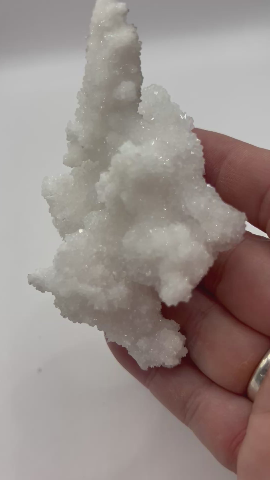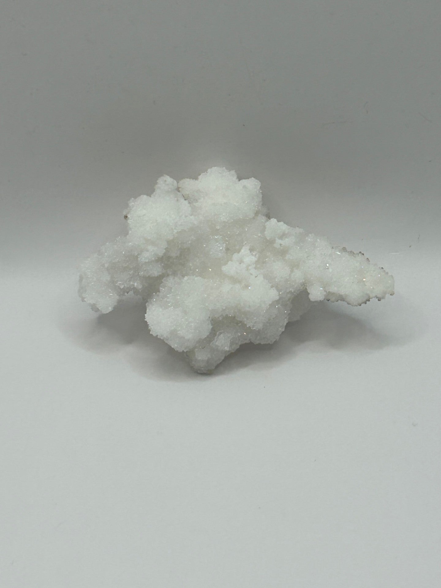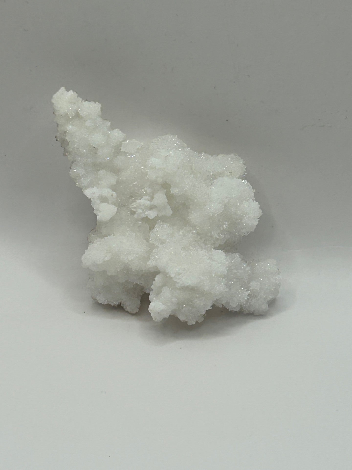 Aragonite from the Santa Eulalia Mining District in Chihuahua, Mexico is cherished for its snowy, coral‑like formations that seem to bloom from rounded bases into delicate sprays of radiating crystals. These specimens form in the historic mines of the region, including the Potosí and Santa Rita workings, where calcium‑rich fluids once created dazzling white chambers lined with aragonite growths. Collectors prize these pieces for their soft, organic shapes, a subtle reminder of the mineral’s unique chemistry. Each cluster carries the quiet magic of Santa Eulalia’s underground “fairyland” caverns, offering a sculptural, naturally intricate mineral that feels both ethereal and deeply rooted in Mexico’s mineralogical heritage.