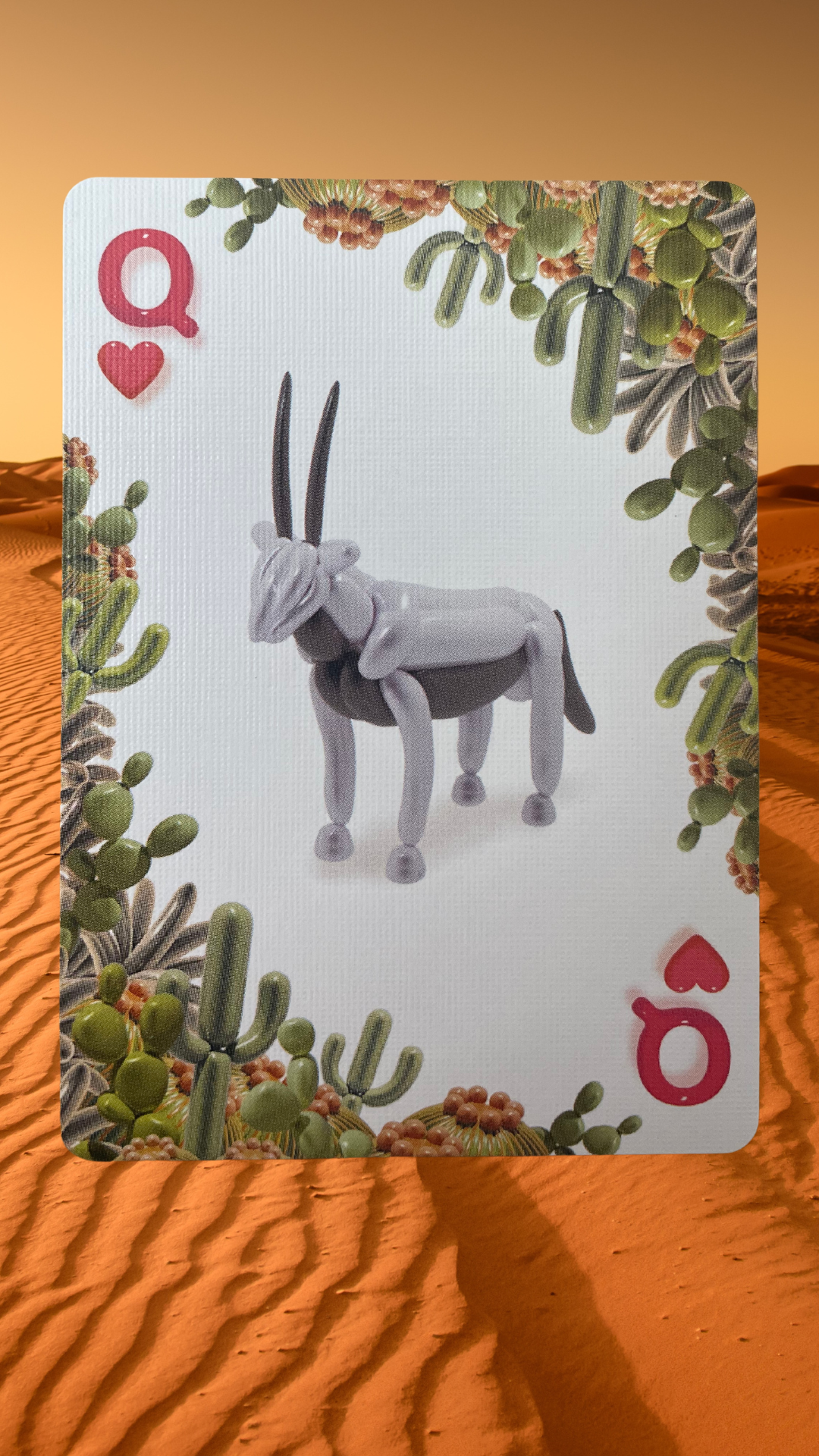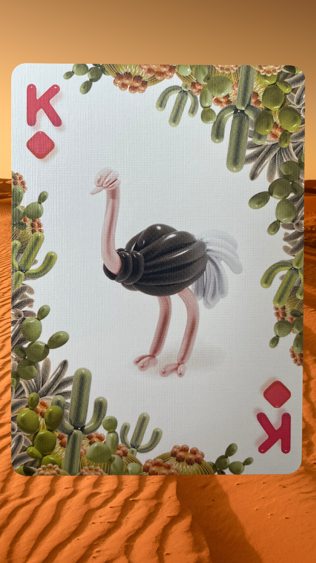 Each card is a testament to the playful and varied life in the desert, depicted as stunning balloon animals. These cards are not just visually appealing; they are crafted for performance with a superior Air-Cushion finish by the United States Playing Card Company (USPCC).