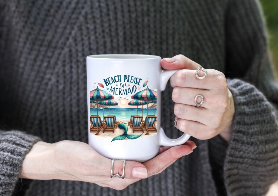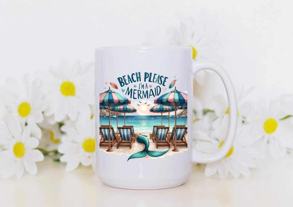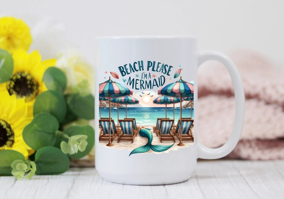 Beach Please I'm A Mermaid - 15oz Coffee Mug
