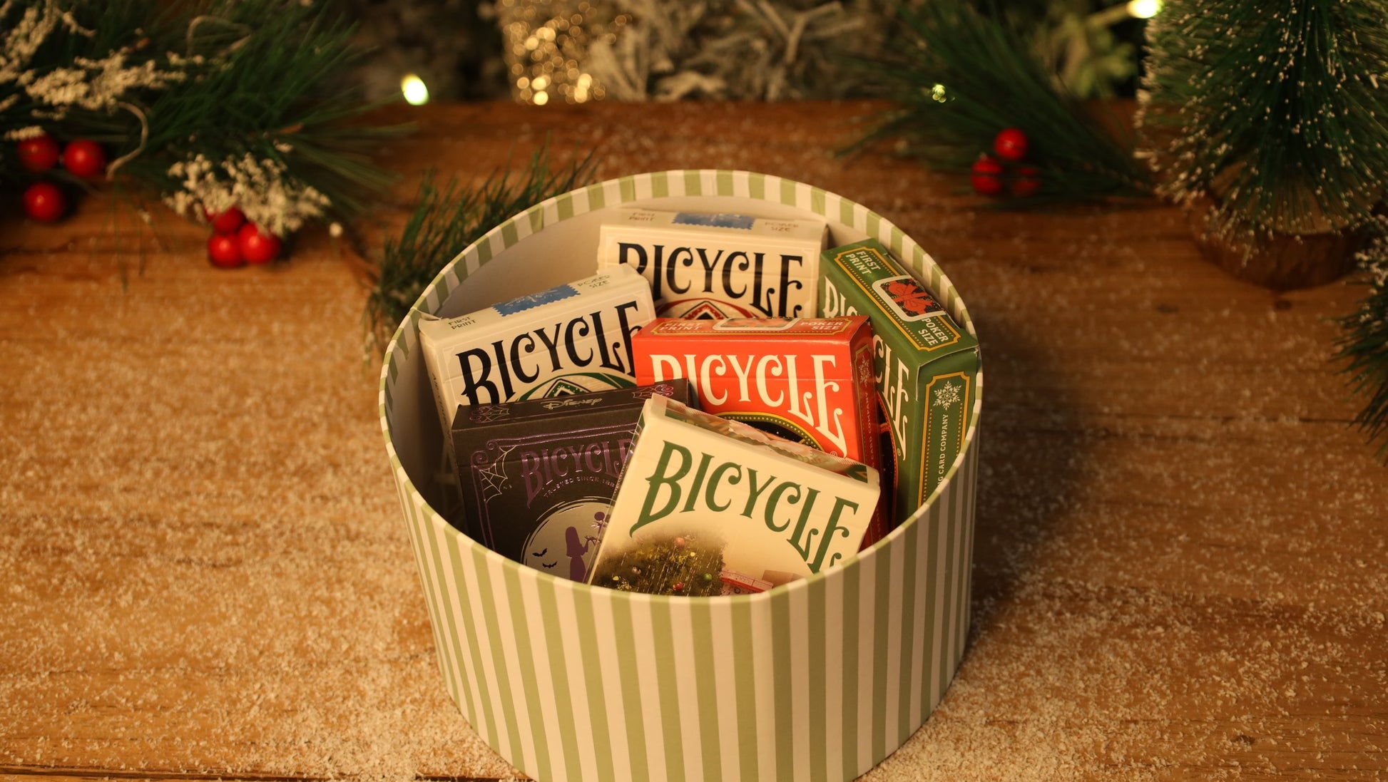 Bring something special to your game nights during this holiday season with our exclusive Christmas-themed bundle! This collection features six unique Bicycle playing card decks, each inspired by Christmas to make your holiday season unforgettable.