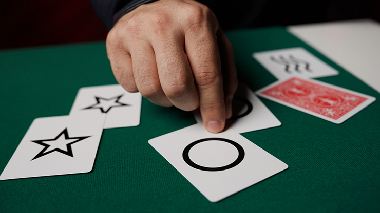 The deck consists of 50 cards depicting the five ESP symbols: Circle, Star, Waves, Square, Cross.