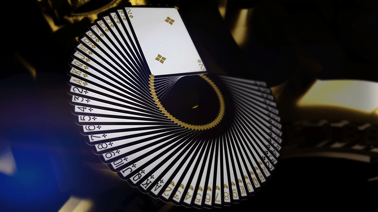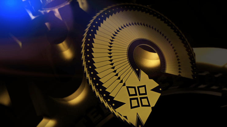 This EXCLUSIVE COLLECTOR'S Bicycle® Cardistry GOLD 5th Anniversary deck is very limited and has De'vo's signature twin tip mirror back design allowing you to make different fans depending on which way you fan them. The incredible black face borders accentuate cuts and moves while the gold corner accents make cool patterns in reverse fans.