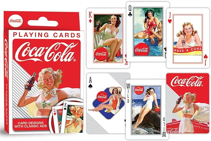 These officially licensed Coca-Cola playing cards are perfect for all card games, offering both functionality and a touch of nostalgia. The cards are ideal for game nights, as a collectible item, or as a unique gift for Coca-Cola fans.