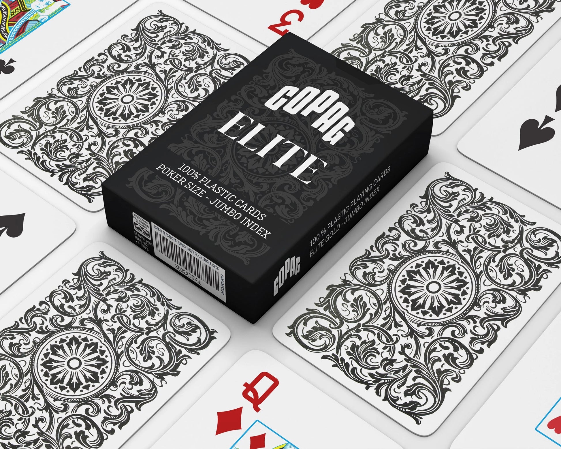 The new Copag Elite Standard Sized (Poker) Jumbo Index playing cards feature some of the most popular styles in gaming rooms and homes today. You receive a single deck of the design selected. As always, these cards are 100% Plastic - durable, washable and extremely long lasting. 52 Card Deck 2 Jokers and 1 Guarantee Card.