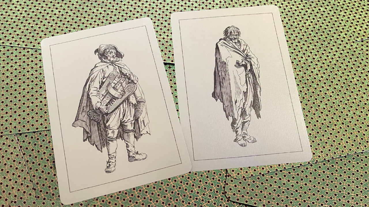The second transformation deck issued by Cotta is from 1806, following the remarkable success of the first almanac deck. This deck was also aimed to have well-known court cards, the interesting main characters and featured figures from classical antiquity, taken from sources such as Greek and Roman plays, as well as the Bible, which adds another historical value to its rarity.