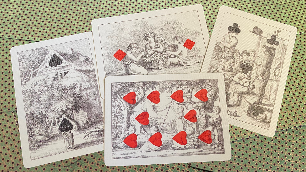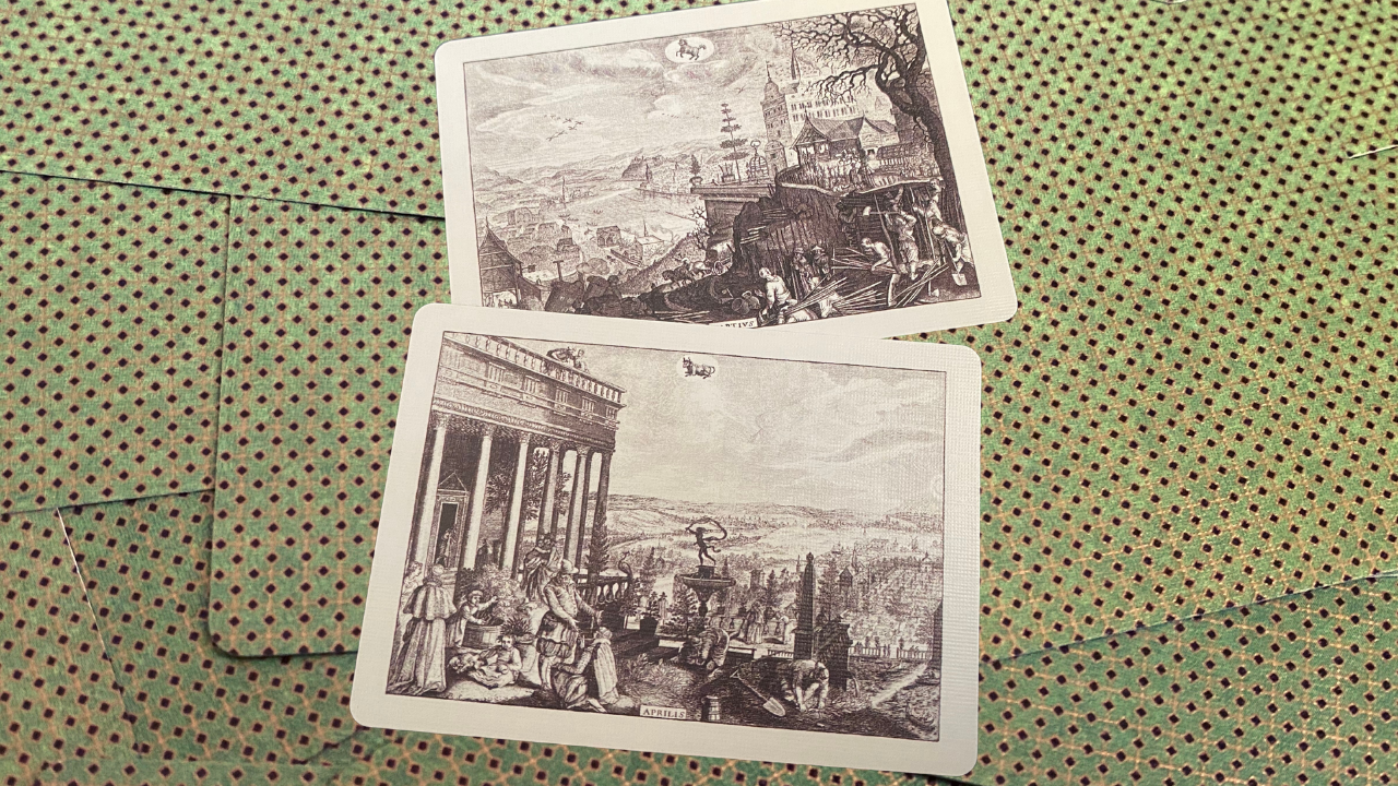 Introducing a precisely digitally hand-recreated reproduction of the next Cotta's almanac deck full of history continuing a year after the previous blue one, which was the first published complete transformation playing card deck in the world!