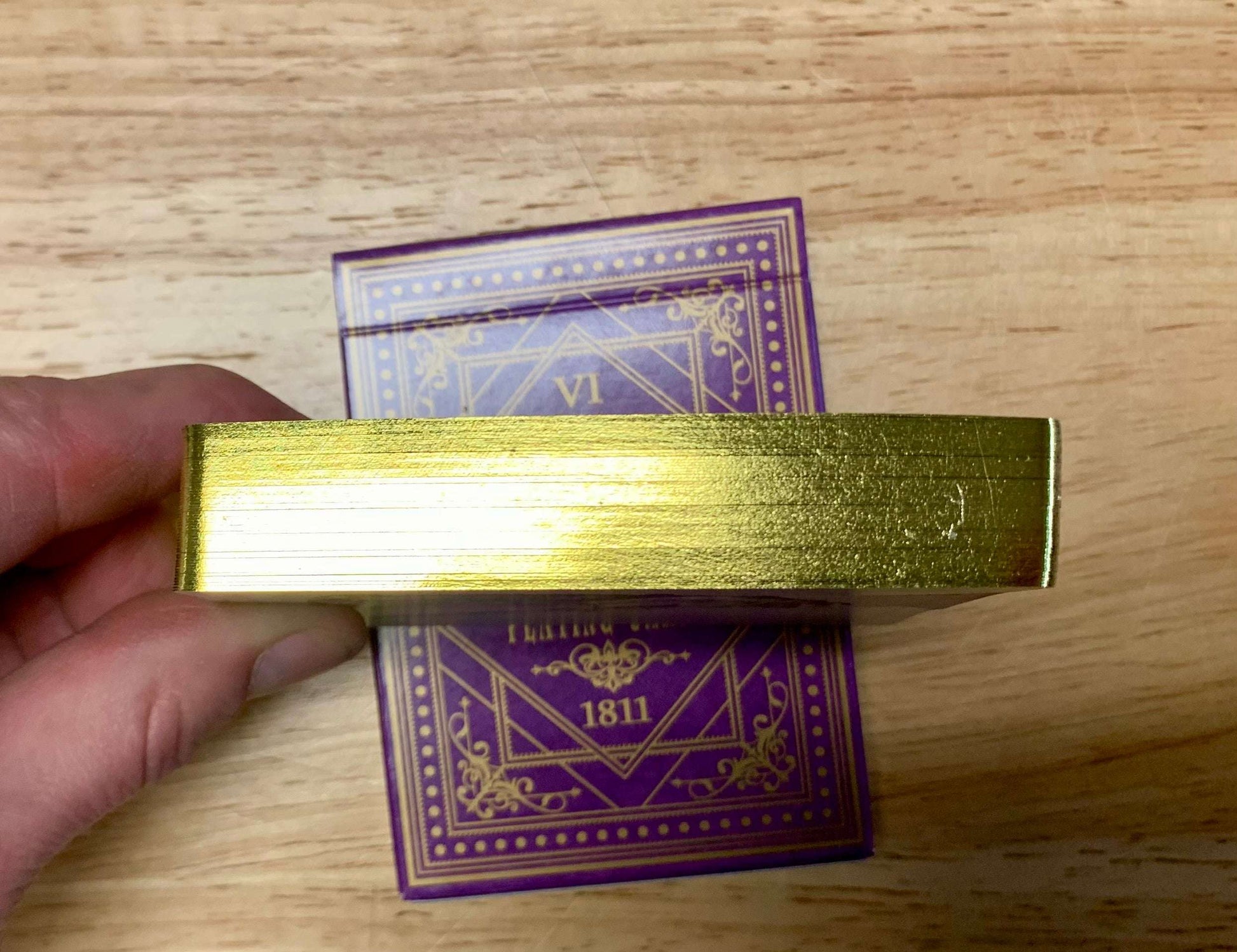 The violet "Knightly Orders" 1811 almanac deck is the sixth in a series of six famous transformation playing card decks.