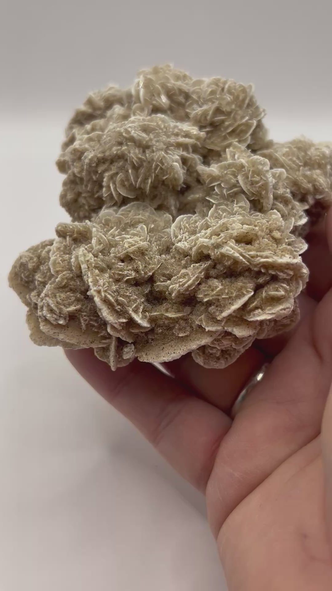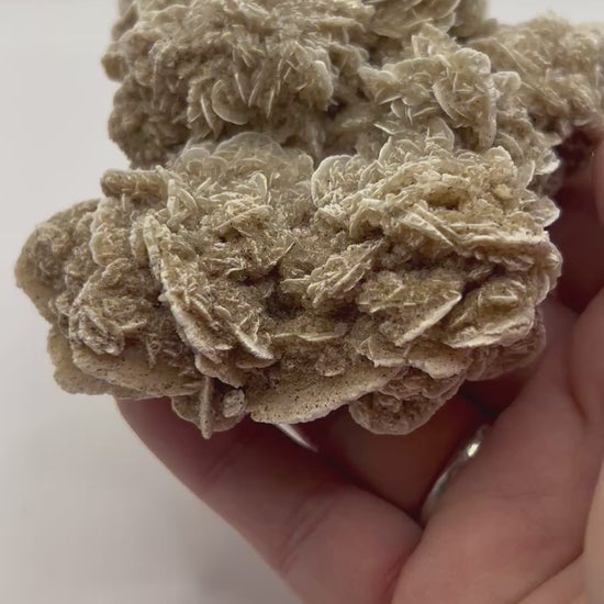 A Desert Rose (also called Sand Rose, Selenite Rose, or Gypsum Rose) is a naturally occurring crystal formation found in desert regions. It forms when water evaporates, leaving behind gypsum or baryte crystals that trap grains of sand. Over time, these crystals grow in a rosette-like pattern hence the name Desert Rose Cluster.