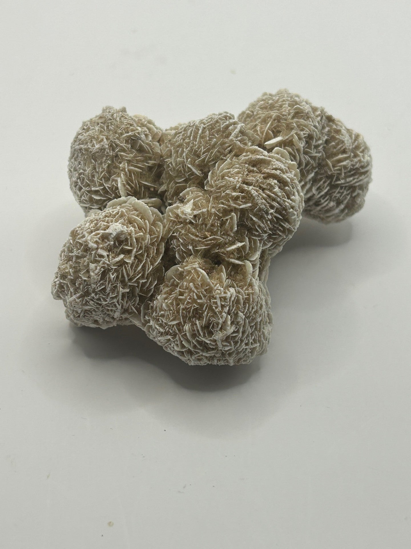 A Desert Rose (also called Sand Rose, Selenite Rose, or Gypsum Rose) is a naturally occurring crystal formation found in desert regions. It forms when water evaporates, leaving behind gypsum or baryte crystals that trap grains of sand. Over time, these crystals grow in a rosette-like pattern hence the name Desert Rose Cluster.