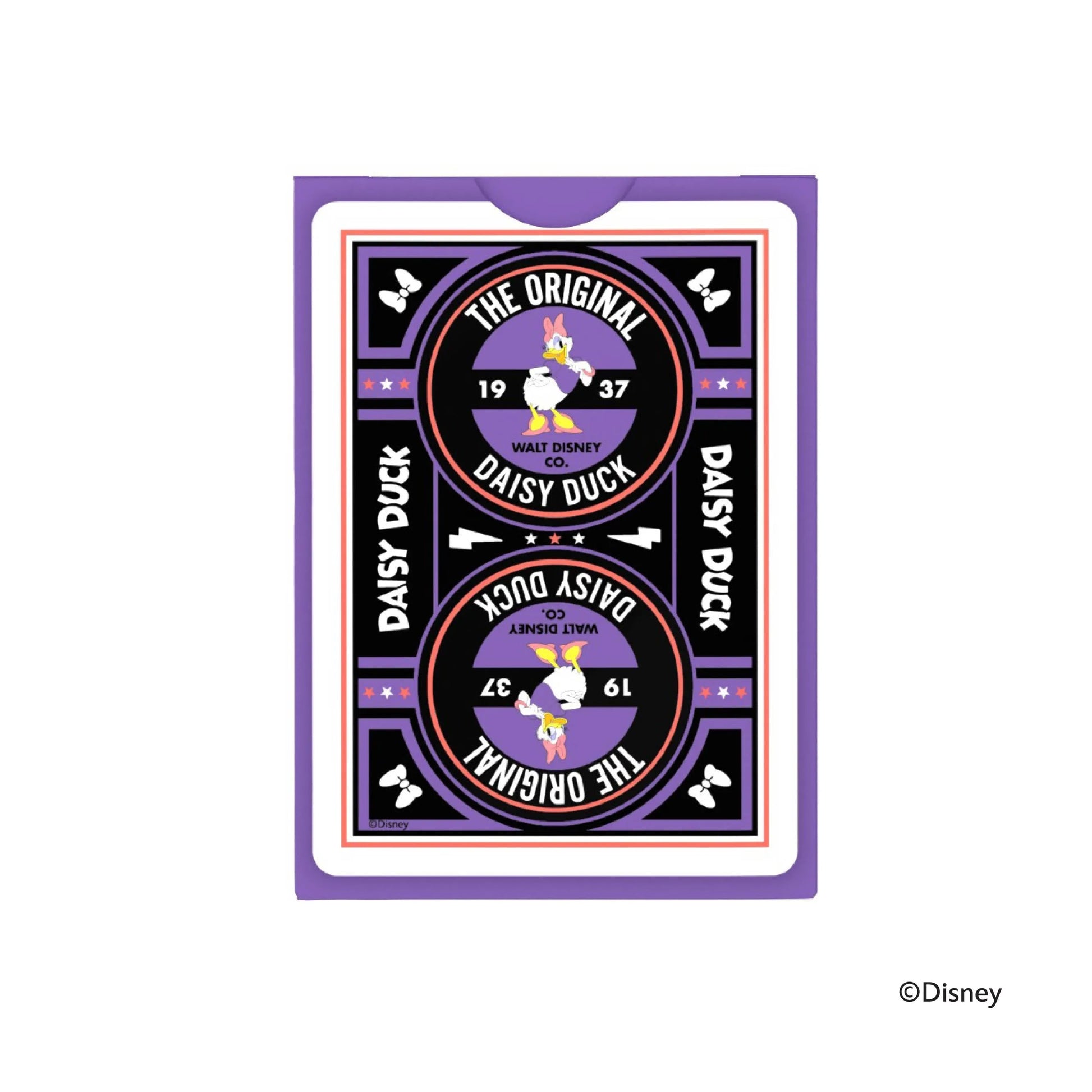 The Disney Classic Daisy Duck Inspired Playing Cards by Bicycle blend playful charm and chic design, featuring Disney’s most fashionable leading lady. Wrapped in a graceful lavender tuck box with spot varnish accents, this deck is the perfect mix of elegance and personality.