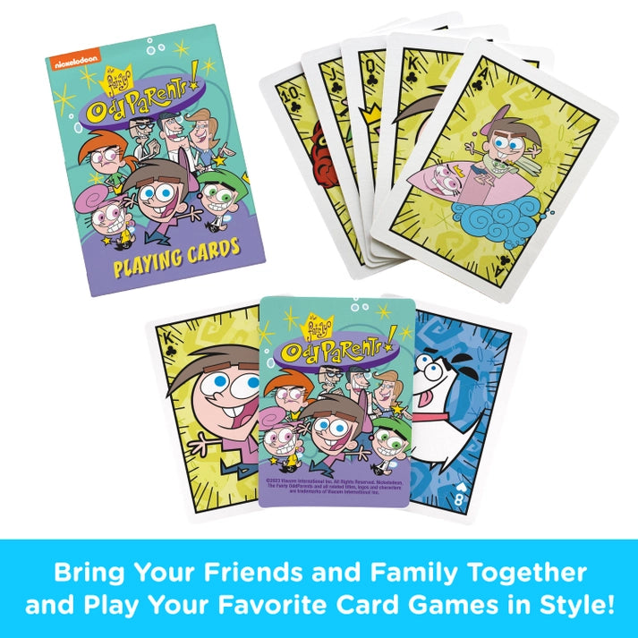 Fairly Odd Parents Playing Cards PLAY YOUR FAVORITE GAME WITH THE WHOLE FAMILY: Put your luck & smarts to the ultimate test with your fellow fans at your next party or game night with this incredibly entertaining deck of Nickelodeon Fairly Odd Parents playing cards that the whole family can enjoy PLAYING CARD DECK INCLUDES MULTIPLE IMAGES: This Nickelodeon Fairly Odd Parents deck of playing cards includes multiple images. It's loaded with imagery and designed for fun for fans and players alike. LOOKING FOR NICKELODEON FAIRLY ODD PARENTS GIFTS? This Nickelodeon Fairly Odd Parents deck of cards is the ultimate gift for fans of all ages. Perfect for game night, birthdays, stocking stuffers, white elephant, and Holiday gifts, that everyone will absolutely love receiving as a gift. 100% OFFICIALLY LICENSED NICKELODEON MERCHANDISE: This deck of Nickelodeon Fairly Odd Parents playing cards is designed by AQUARIUS and officially authorized.