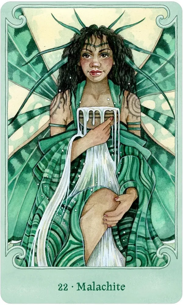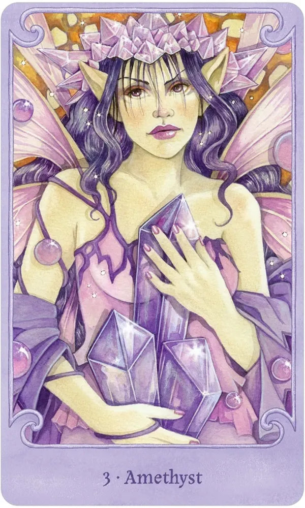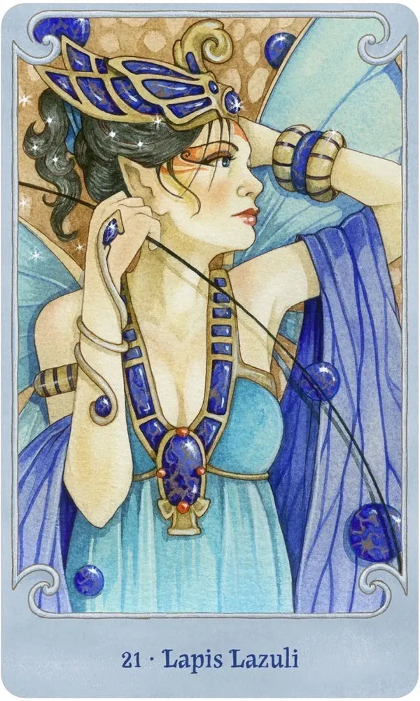 Fairies have been with us forever. Spun of light and shadow, these mysterious beings are timeless nature spirits who belong to the wild and carry all its wisdom and power. They connect us to a vibrant, enchanting world where anything is possible. Gemstones and crystals, too, have always held the promise of magic. They’ve been used as amulets and talismans — called on to protect or heal, to grant clairvoyance and prophecy and travel into other realms. In this 40-card deck, the power of fairies and gems come together through the luminous paintings of Linda Ravenscroft and the book of oracles. Each card will bring you insight from the world of Fairy. Enter this enchanted realm to befriend the spirits of earth and sky, and to encounter the treasure of your own soul. Set includes 40 iridescent silver gilt-edged cards, organza pouch and 204-page guidebook, packaged in a magnetic hinged, foil-accented box.