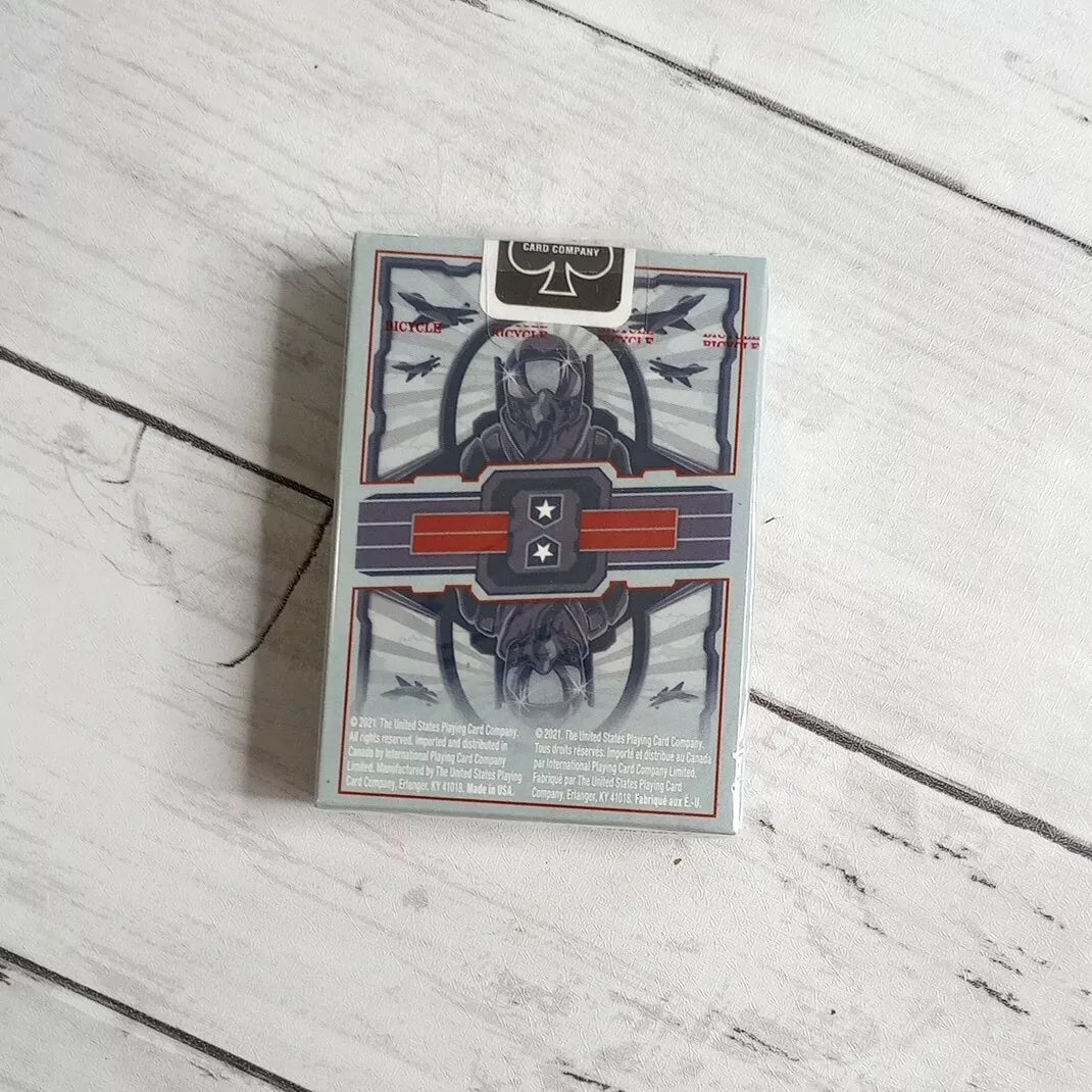 Fighter Ace playing cards are a deck with an aviation theme, featuring designs inspired by fighter pilots and aircraft. These cards are produced by Bicycle and have the classic Air-Cushion finish for smooth shuffling and durability.