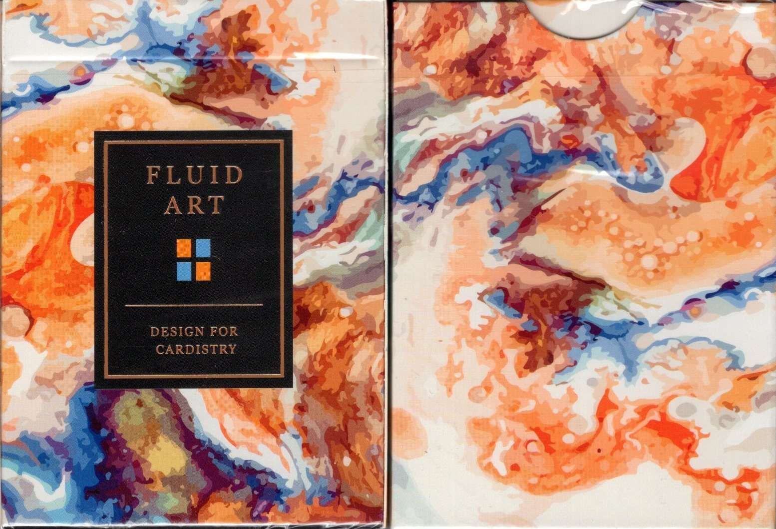 The eye-catching and visually striking combo of orange and blue complementary colors permeates every facet of the playing cards. With crisp narrow white borders and simple fresh design, the Fluid Art Playing Cards Standard edition can be defined as: Art.