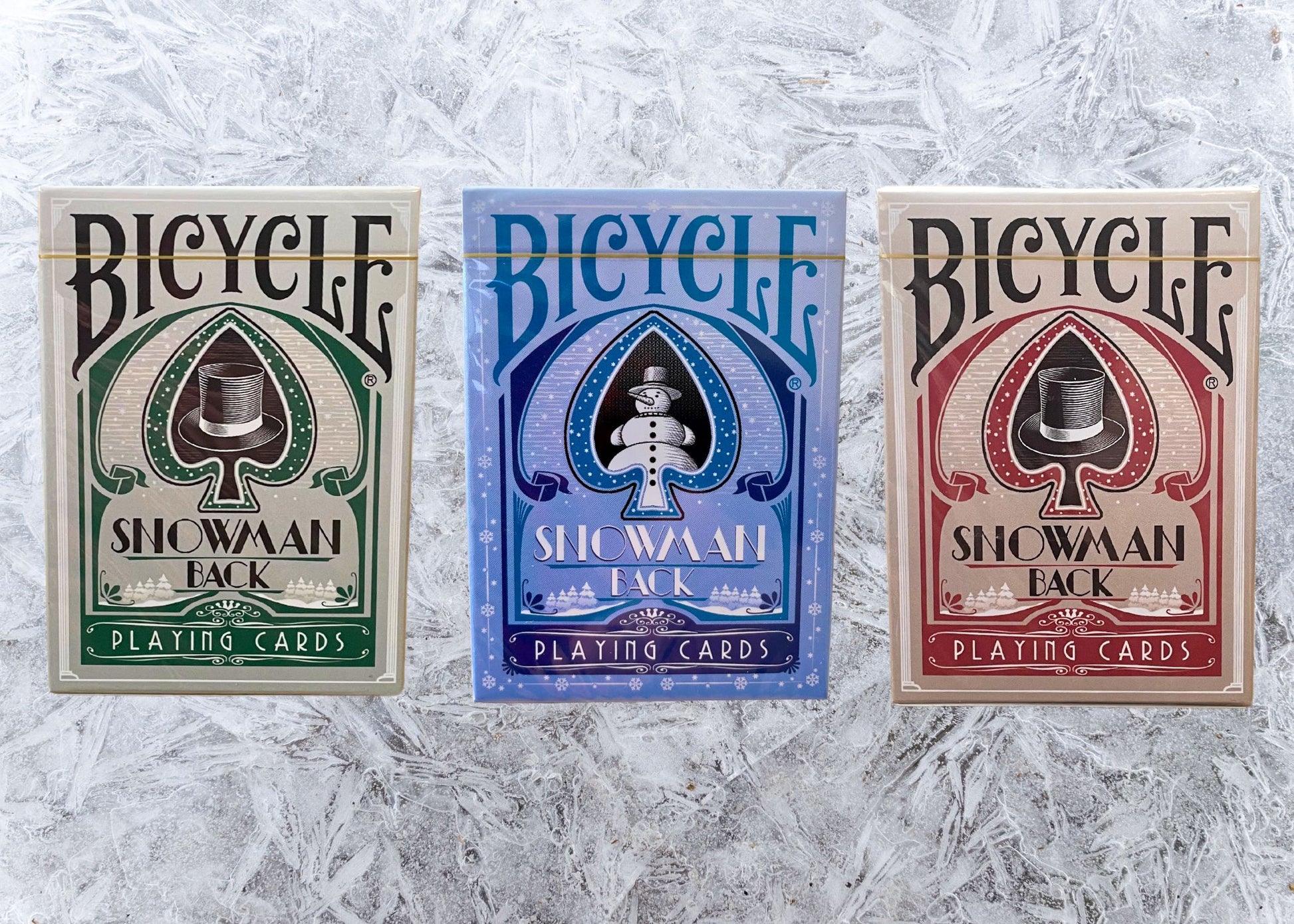 🎄Add all 3 editions of our Gilded Snowman Bicycle Playing Cards to your collection. Only 250 will feature these luxurious gilded edges that glimmer like frost against the snow-covered designs.