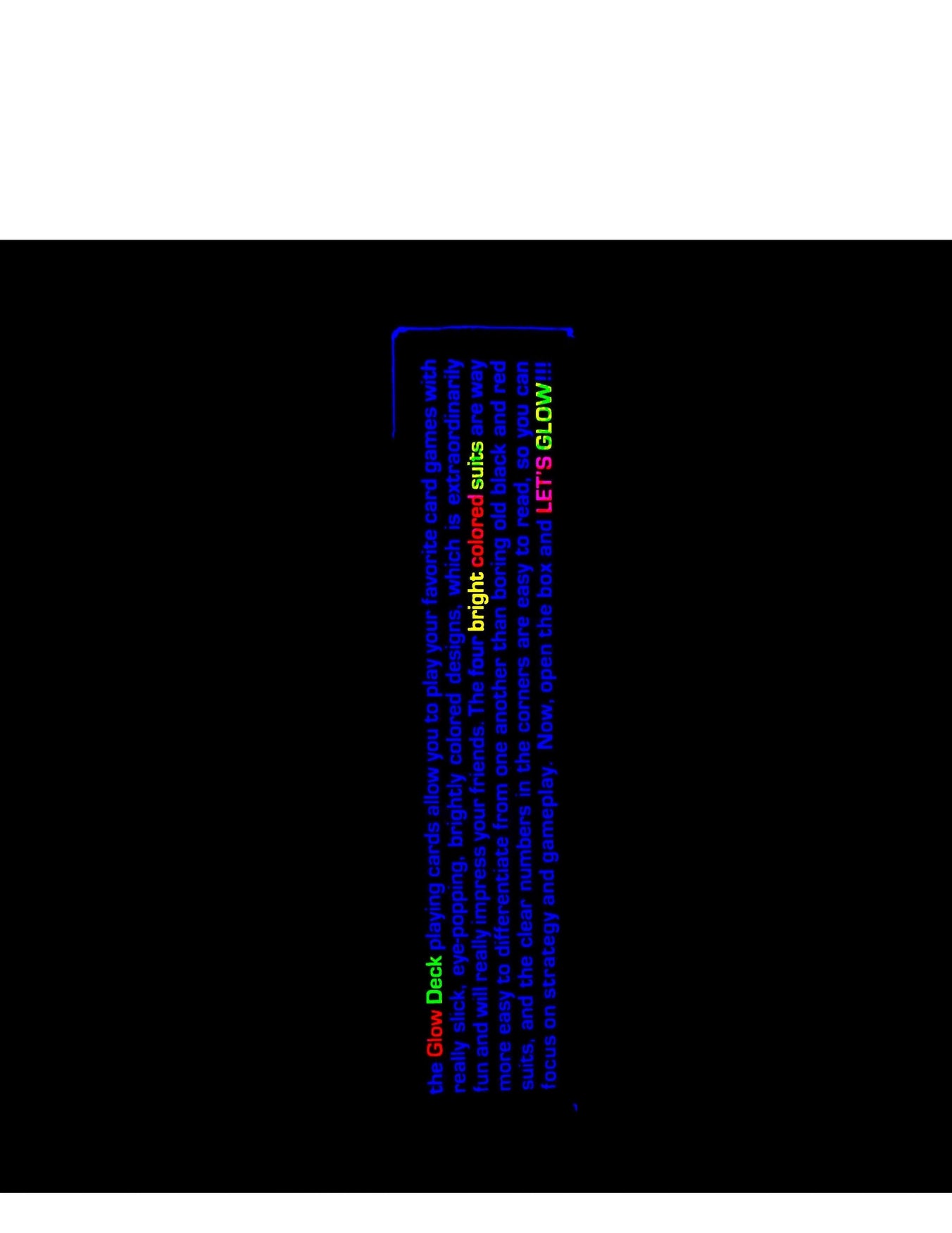Glow Deck glows in the dark under fluorescent light (black light), but they're also super bright in daylight and dim light, and have super-cool, custom designed suits and layouts.
