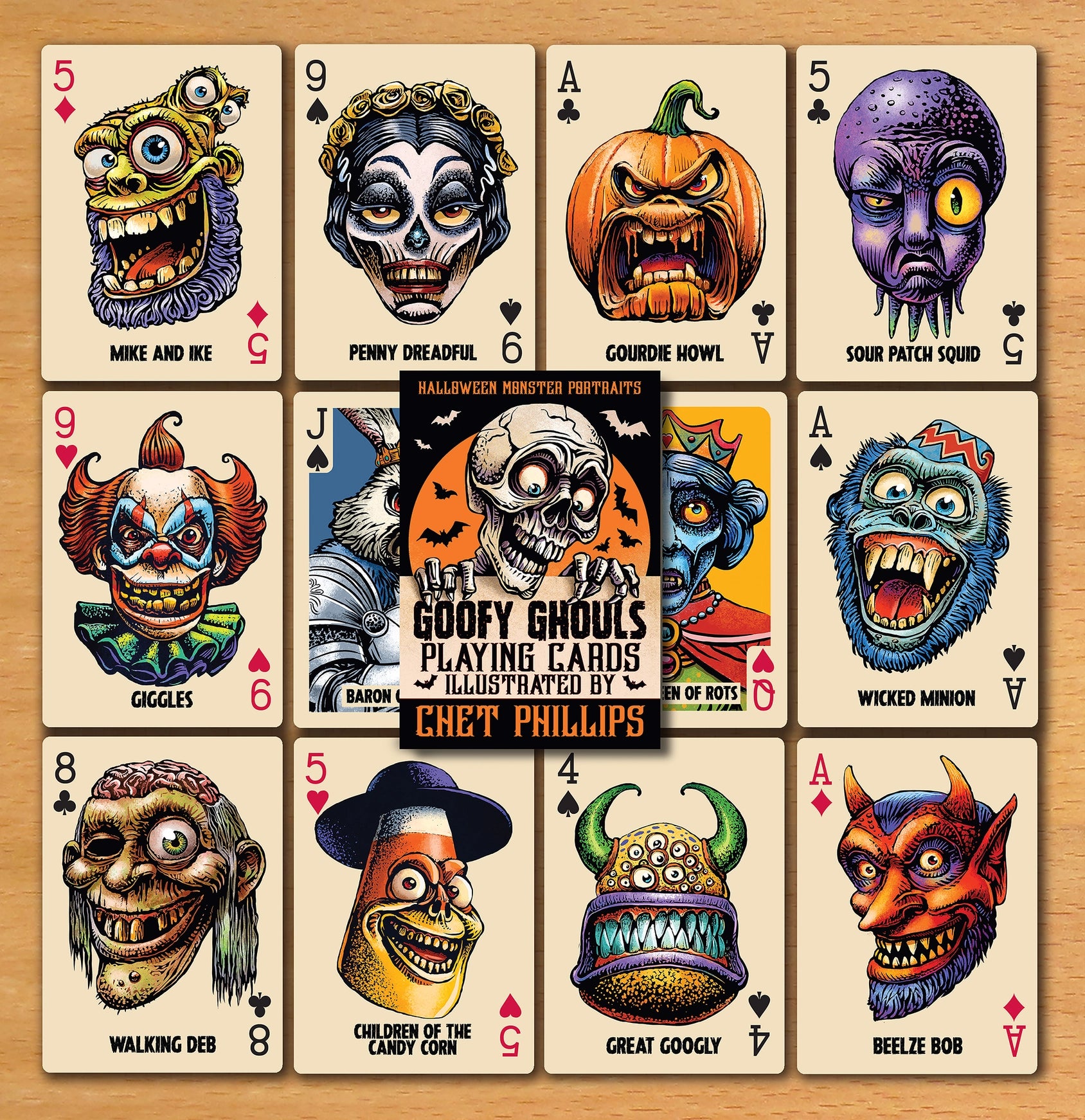 Goofy Ghouls- Halloween Monster Portraits Playing Card Deck with illustrations by Chet Phillips.