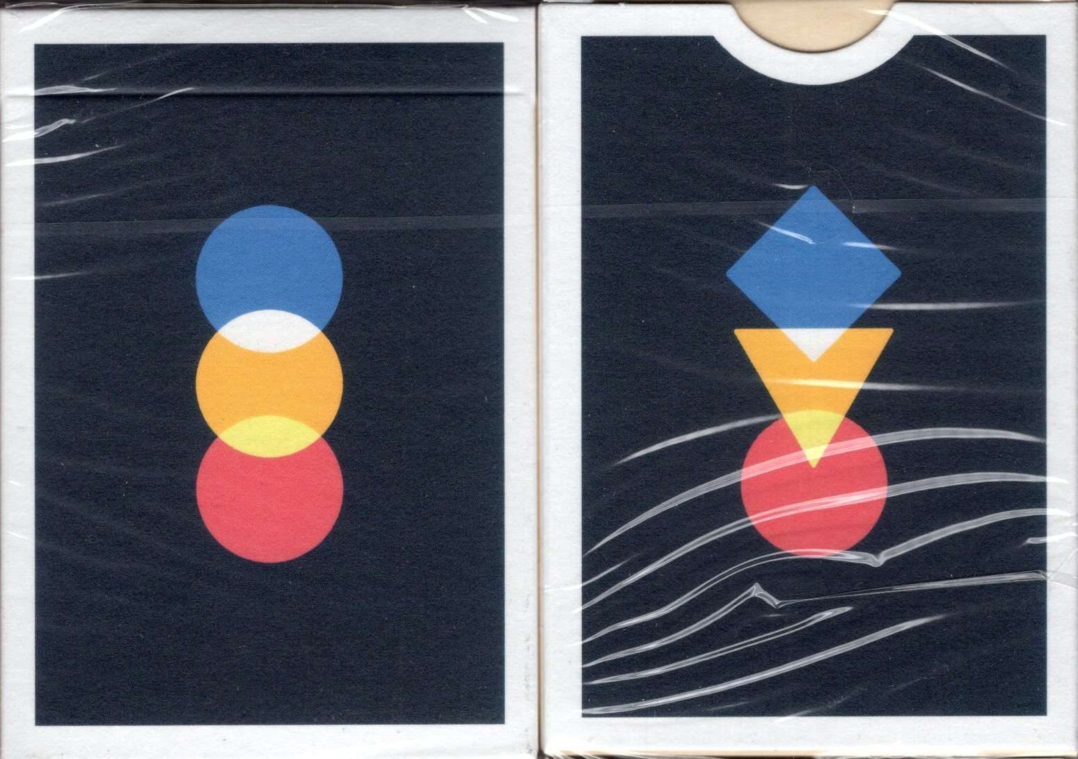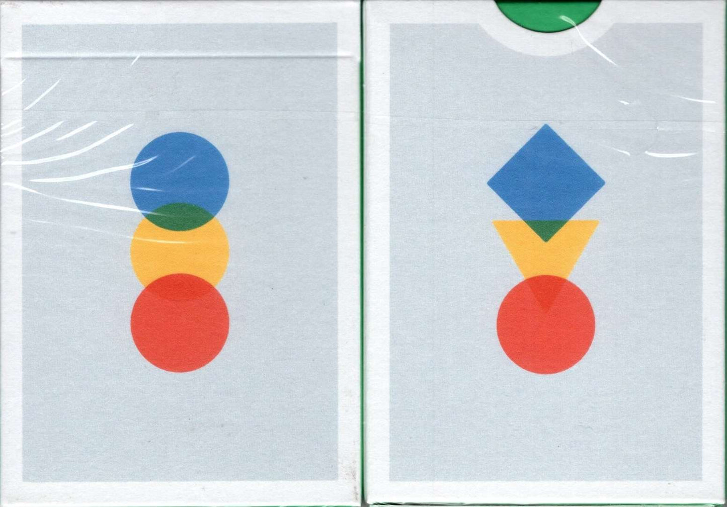 Combining shape, color, and order Graphic 303 produces 504 different potential unique cards. Selected down to a 56 back set, with 4 art cards, and classic American faces.