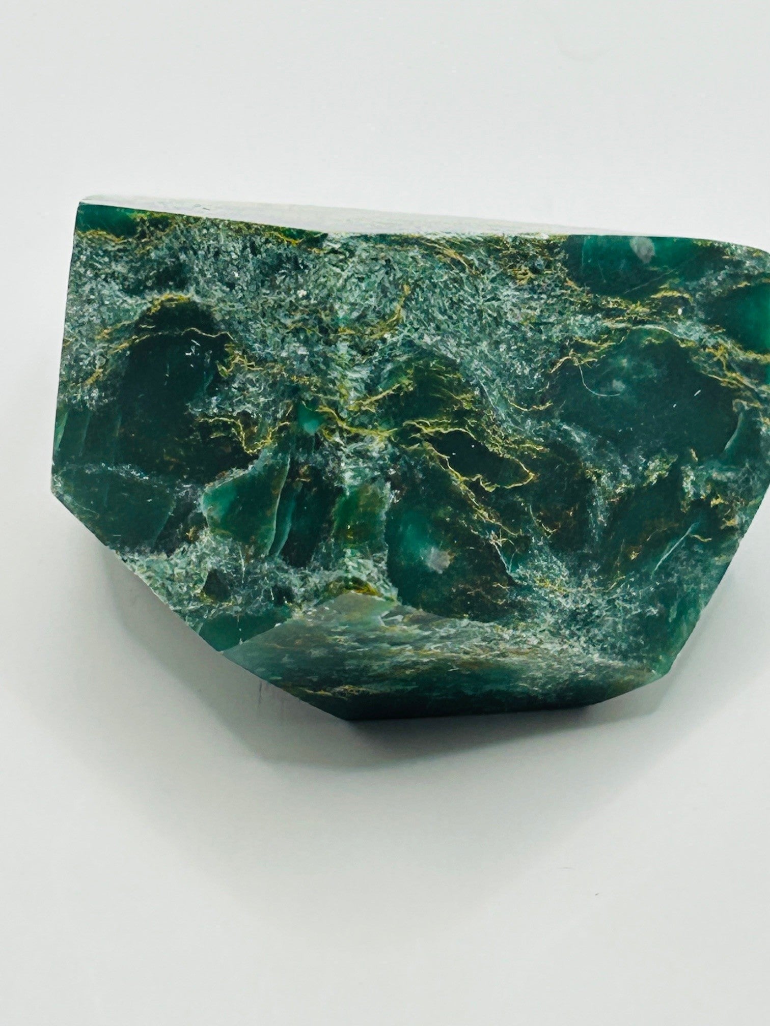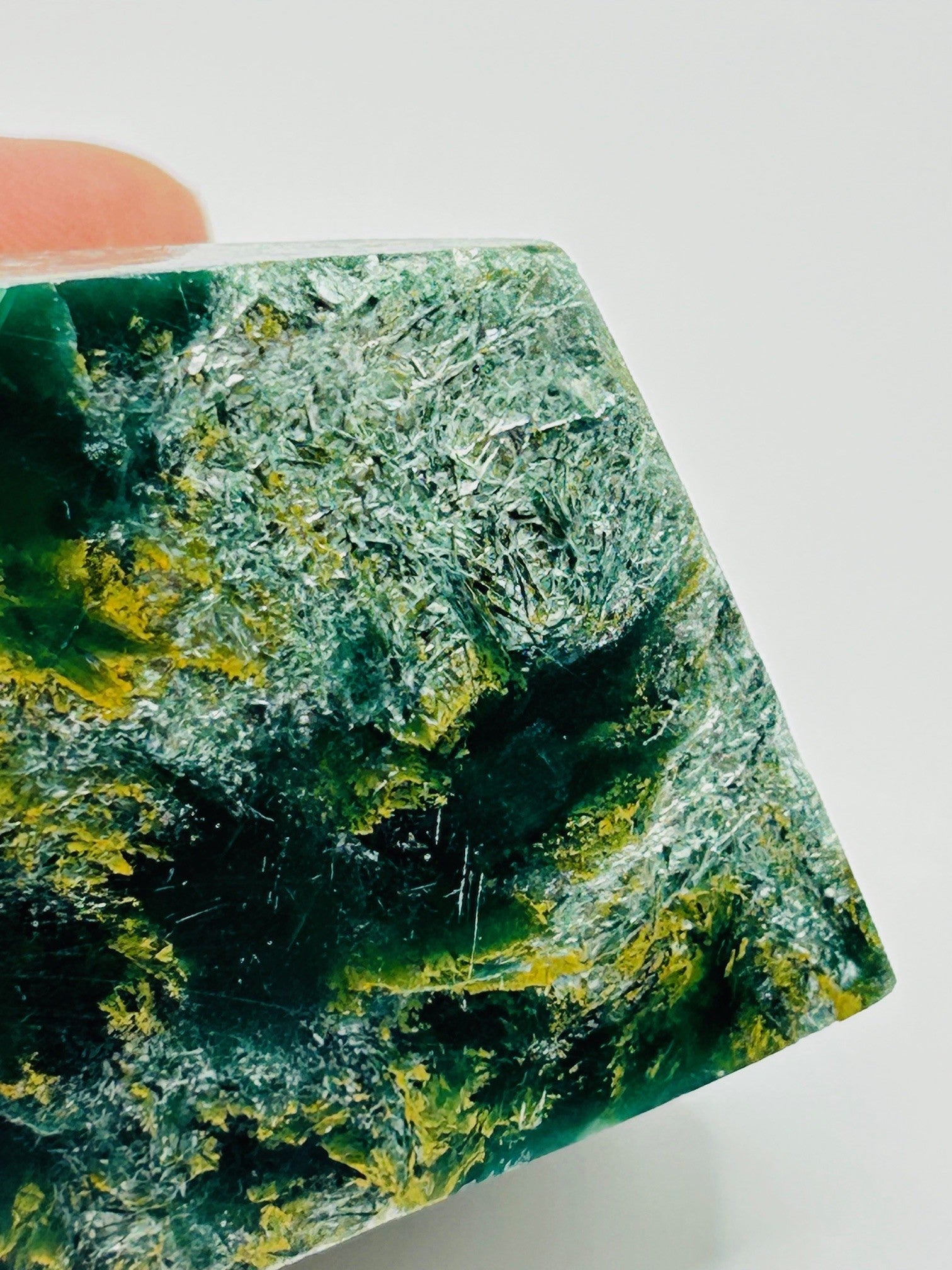 Green mica, most commonly known as Fuchsite, is a chromium-rich variety of muscovite that shimmers with a vibrant emerald hue and delicate, reflective layers. Its flaky, sheet-like structure gives it a soft, pearlescent luster, making it both visually captivating and physically fragile. Found in metamorphic rocks, Fuchsite is often associated with heart-centered healing and emotional renewal, believed to mirror back one's inner truth with clarity and compassion. In metaphysical practices, it is used to support recovery from burnout, enhance self-worth, and connect with nature spirits or fairy energy. Its gentle vibration and luminous appearance make it a favorite among collectors, healers, and those drawn to the subtle magic of the mineral world.
