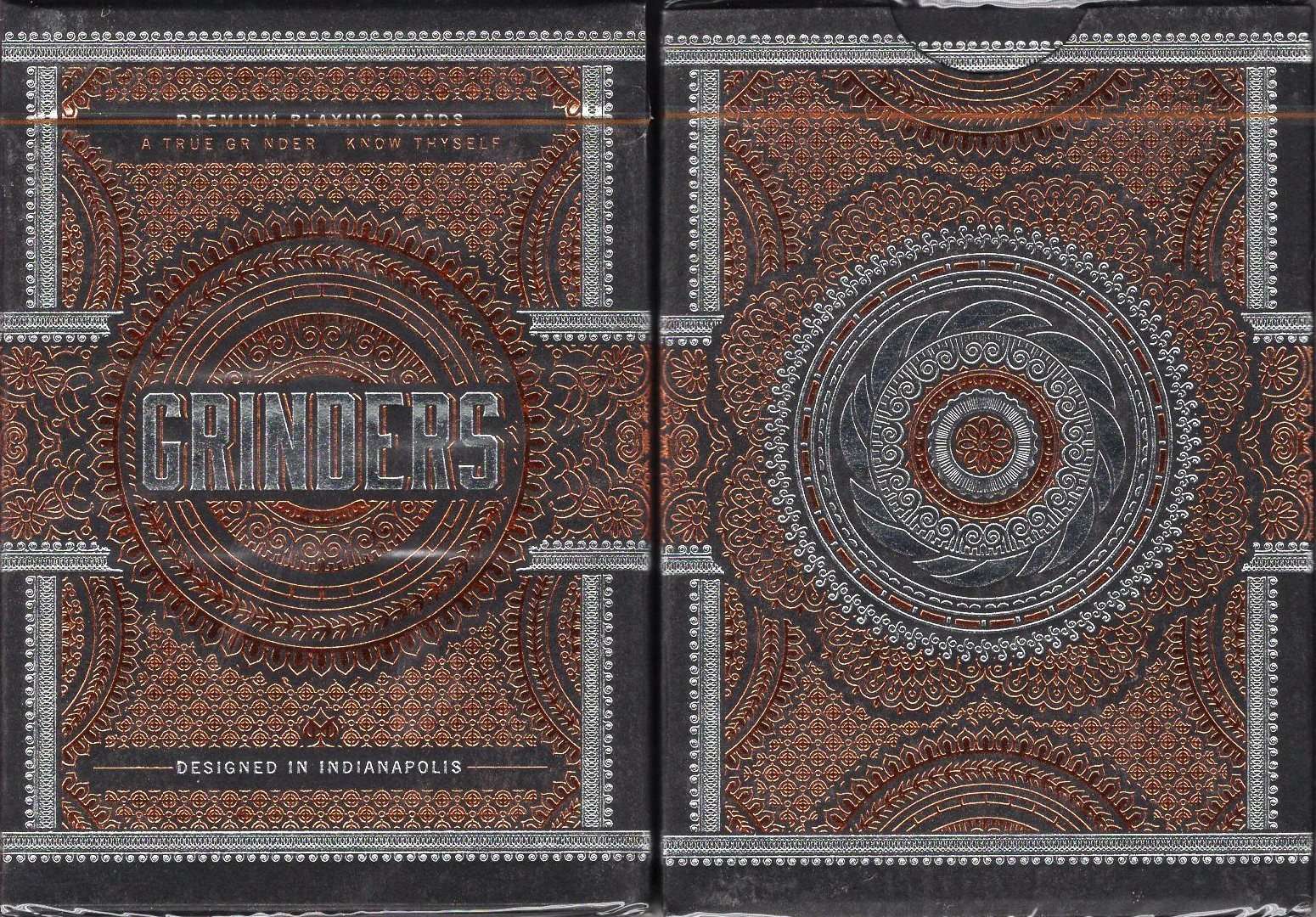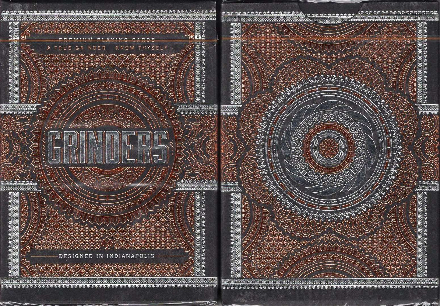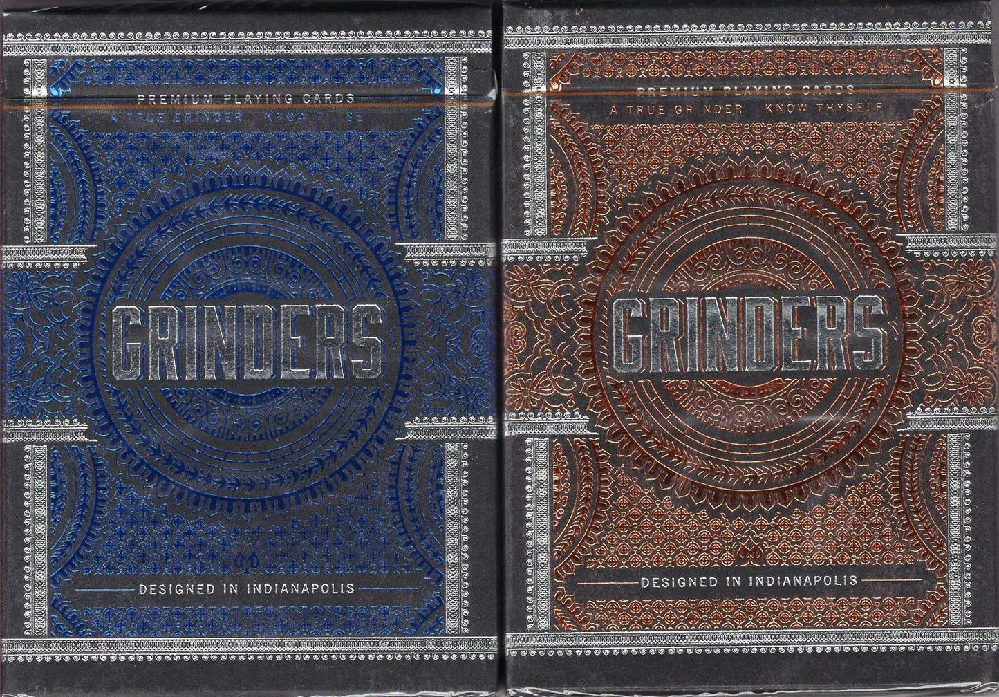The Grinders design embodies the workhorse mentality of a professional Grinder, but also contains elements of grandeur and opulence. The Blue and Copper pair of Decks are printed by the Legends Playing Card Co. with their exceptional Classic Finish.