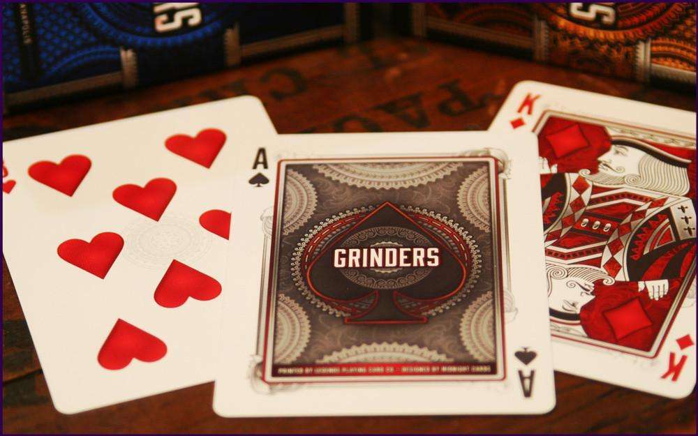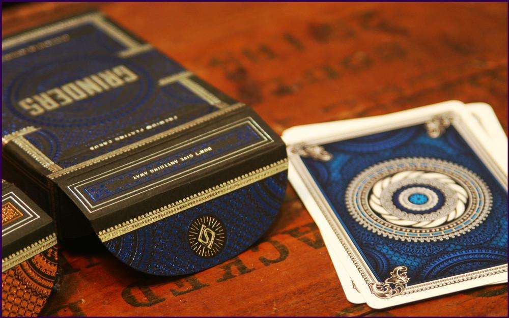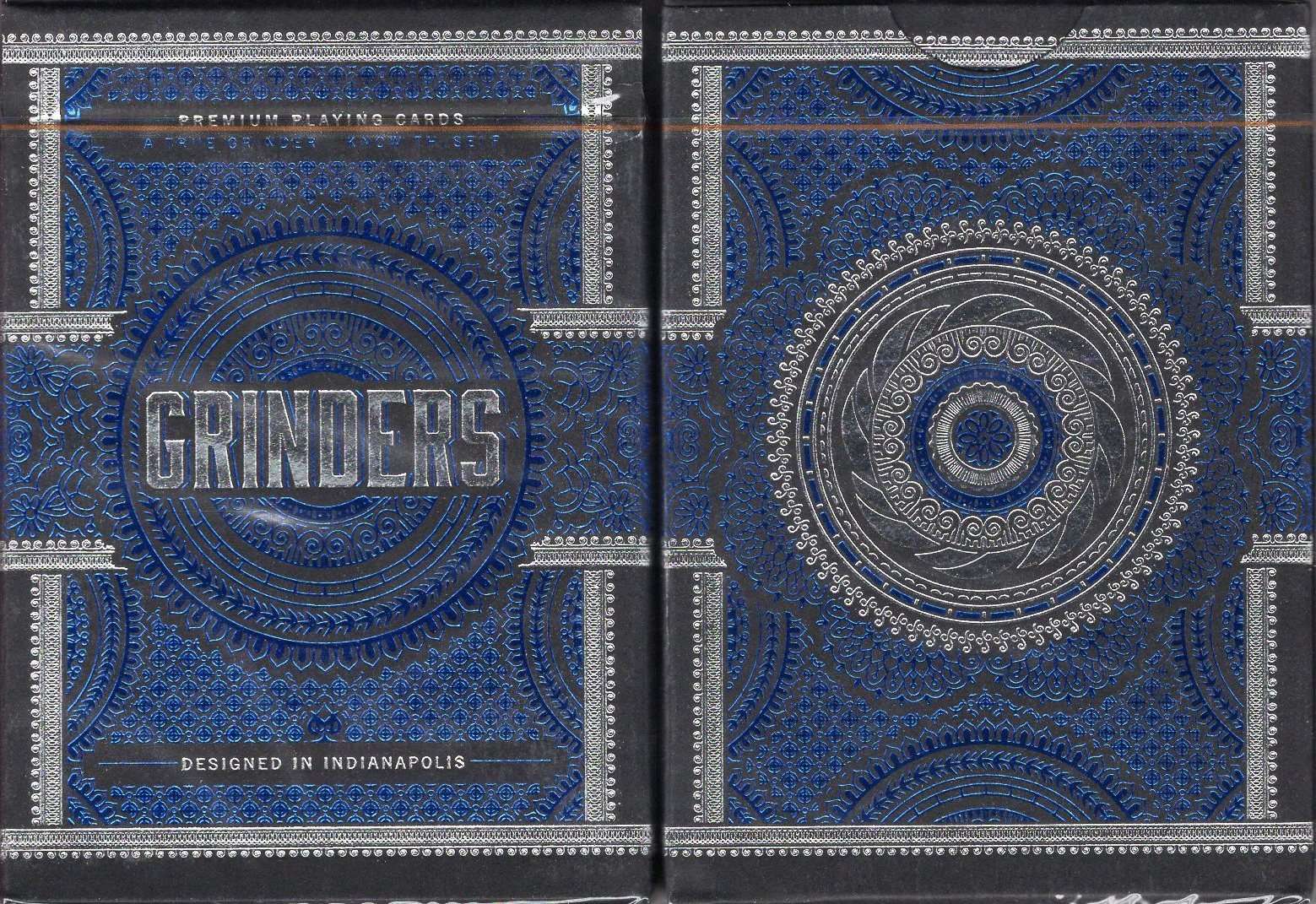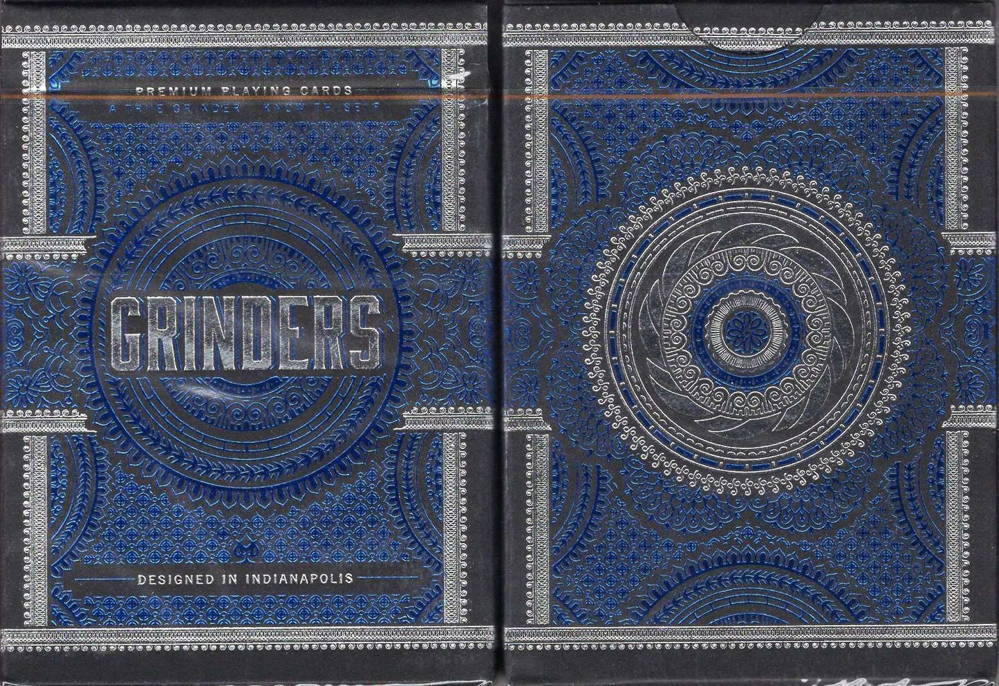 The Grinders design embodies the workhorse mentality of a professional Grinder, but also contains elements of grandeur and opulence. The Blue and Copper pair of Decks are printed by the Legends Playing Card Co. with their exceptional Classic Finish.