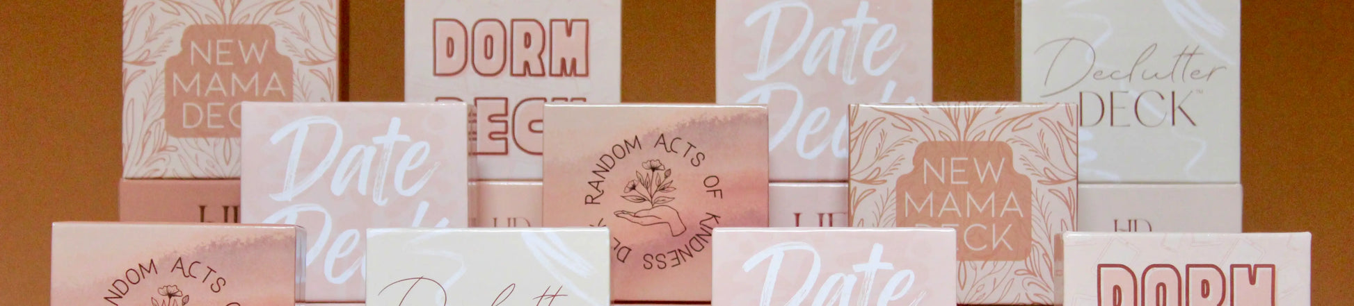 Use them to declutter your space, spark creativity, plan meaningful moments, or bring kindness into your day. The decks are designed to meet you where you are, whether you need structure, inspiration, or just a quick push forward.