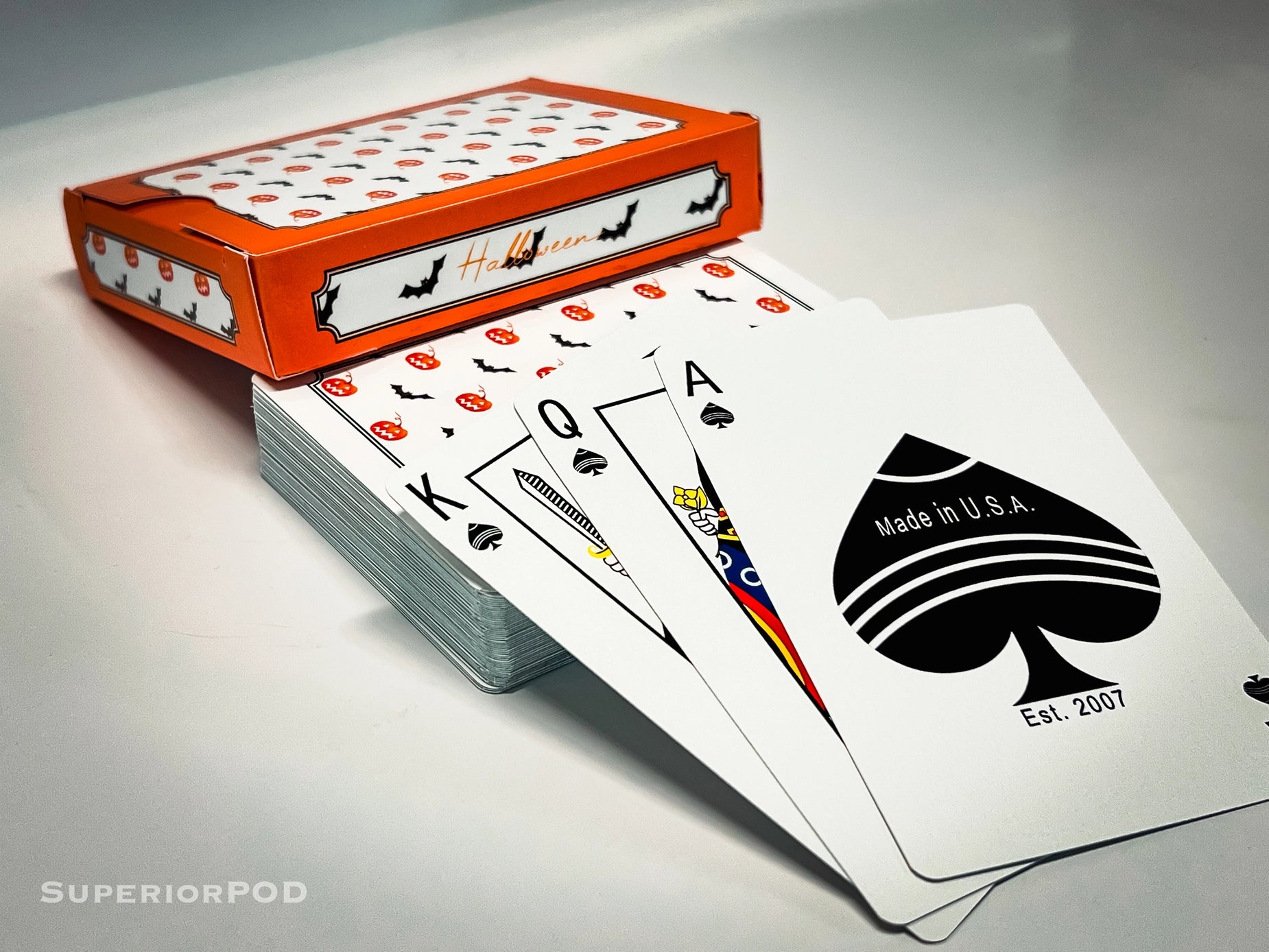 Lets get spooky! This card deck will surely put you in the mood to pop on your favorite fall comfort movie and settle in for a cozy game night. This design features an adorable repeating pattern of Jack-O-Lanterns and black bats. A great gift for a birthday, Halloween, or "just because" this deck would be an awesome addition to any playing card collection.