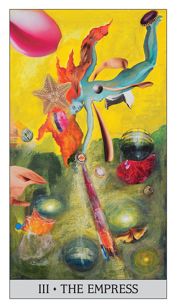 Japaridze Tarot is a reimagining of the tarot universe through the visionary lens of leading Parisian contemporary artist, Nino Japaridze. In each of her 78 collage-style surrealistic paintings she boldly explores the many layers of esoteric symbolism in tarot, revealing its transformative powers. Her unique interpretations of the Minor Arcana delve deep into elemental, as well as numerological associations.