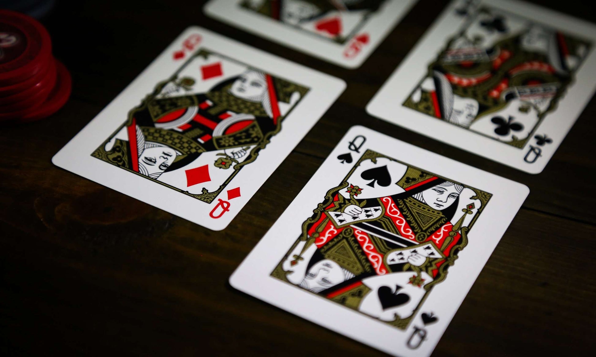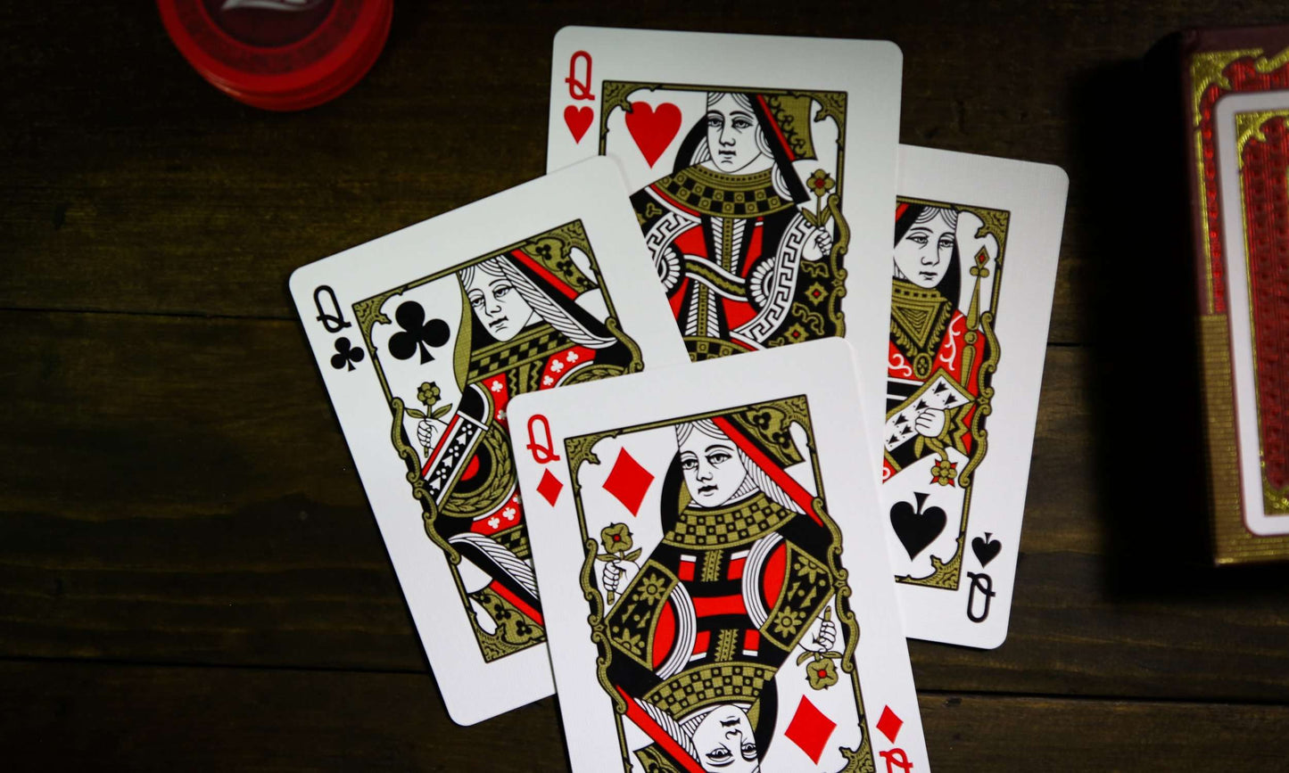 The Back Card for the Lucky 7 Casino Deck utilizes a Metallic Gold ink and two Pantone colors. The Face Cards feature a Metallic Gold ink and three Pantone colors. The Ace of Spade is headlined by a Vegas-style showgirl, and the Jokers feature a unique old-school style Slot Machine with the Number 7 symbol and colors spotlighted. Each semi-custom Court Card exudes luxury with the unique border treatment, but remains extremely playable with the Court artwork we all know and love.