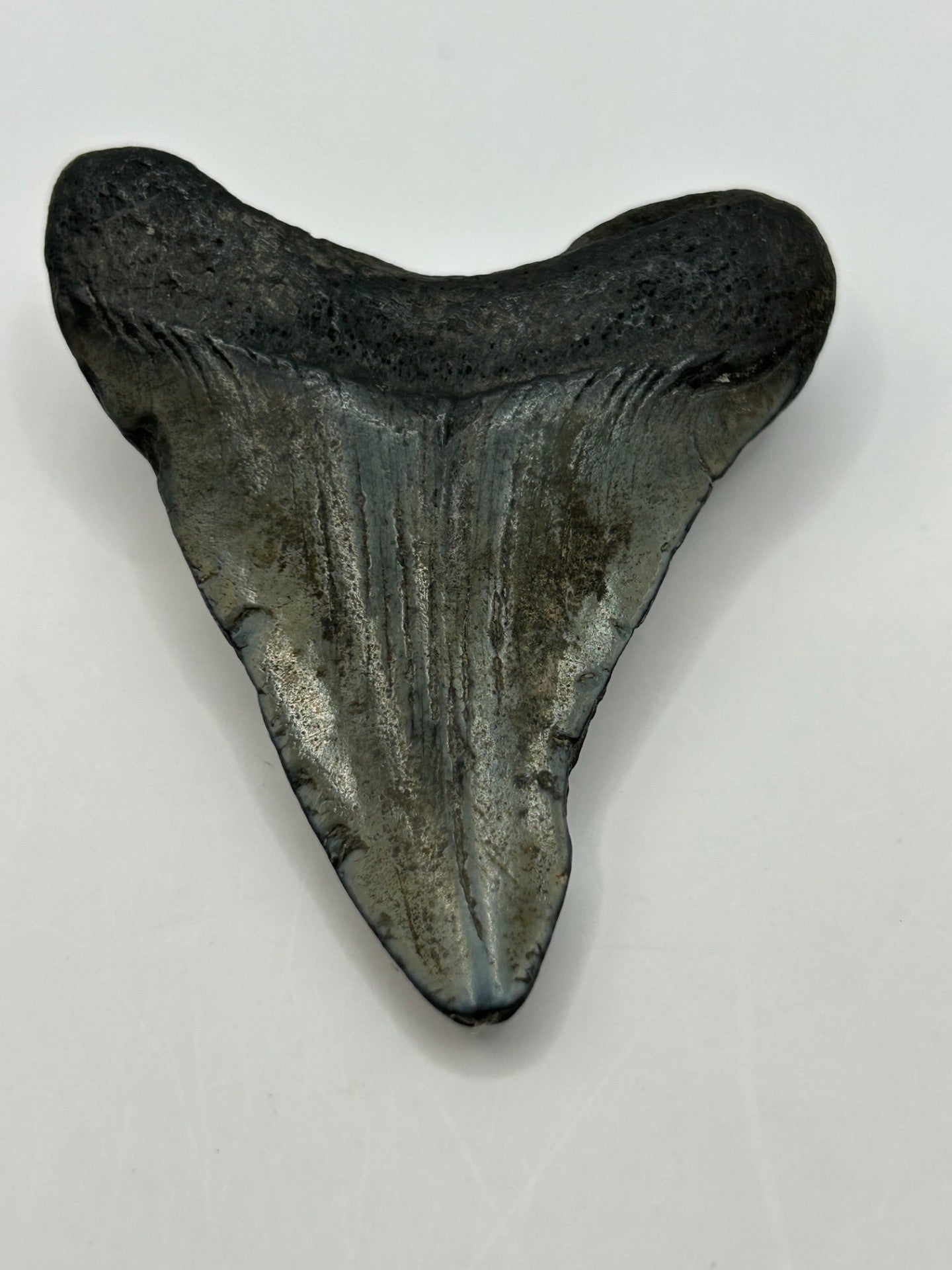 This fossilized Megalodon tooth from the Miocene epoch, unearthed in South Carolina, is a relic of a time when the oceans teemed with giants. (roughly 23 to 3.6 million years ago) Its dark, serrated edges and triangular form speak to the raw power of the largest shark to ever live, a creature that could reach lengths of over 50 feet. Holding this tooth is like touching deep time itself, a tangible fragment of prehistoric life that evokes strength, resilience, and the enduring mysteries of the sea. Whether displayed as a collector’s prize or used in ritual, it channels ancient energy and awe.