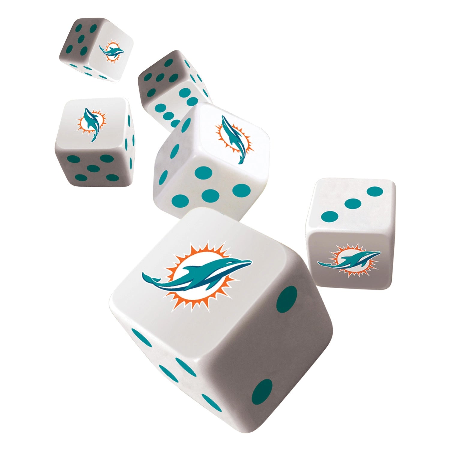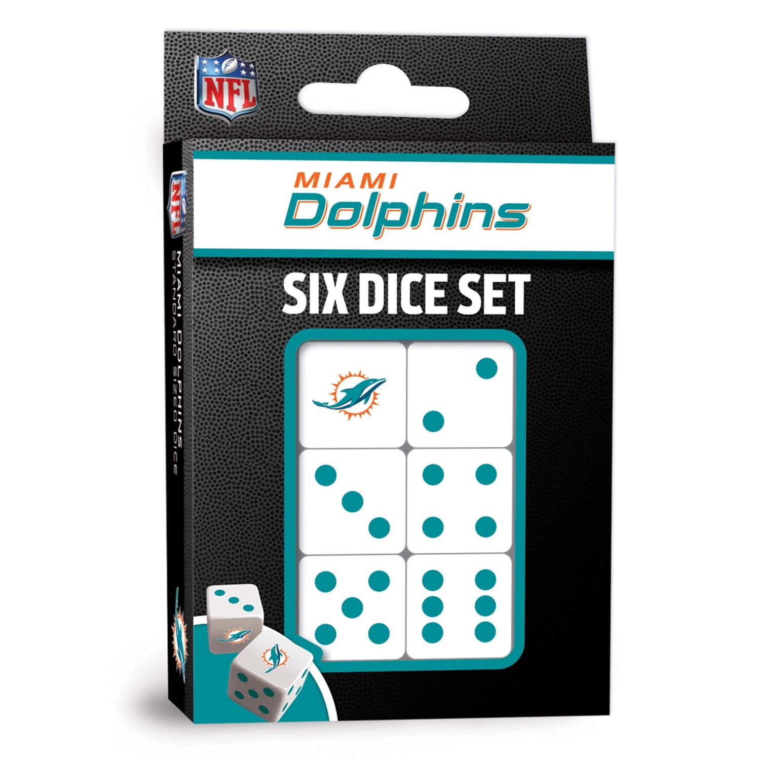 Ready to roll with your favorite NFL team? Then do it with style and officially licensed dice! This 6-piece D6 gaming dice set from MasterPieces is perfect for Craps, Grand Hazard, Klondike, and any other dice game you can think of. Each die has the Miami Dolphins logo and colors prominently displayed, so you can show your team spirit while you roll. The dice are also standard size (16mm) so they're easy to grip and use. Suitable for ages 6 and up, this is a great gift for any Dolphins fan - or for anyone who loves to roll the dice!