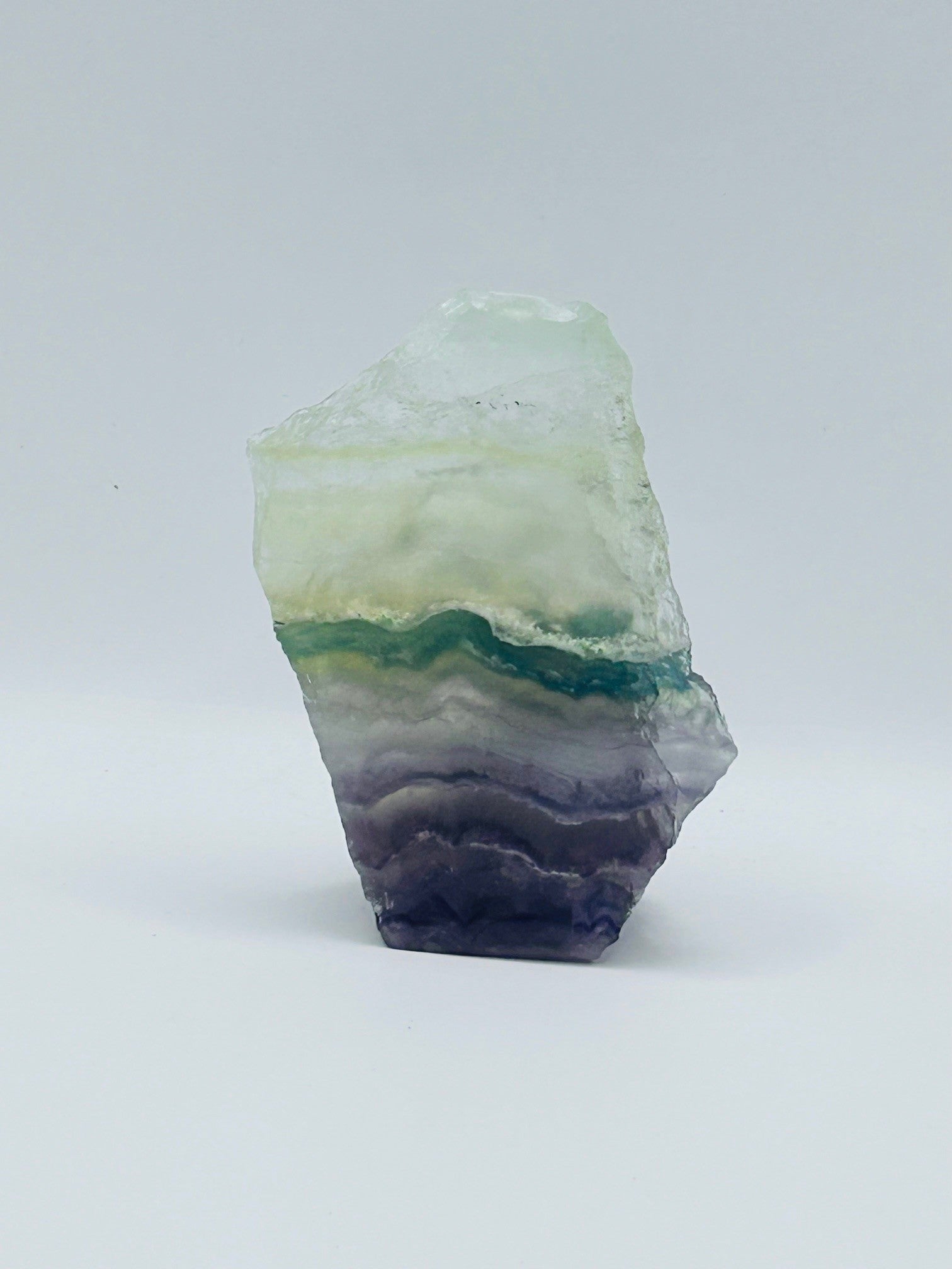 Layered like a dreamscape, this multi-colored Fluorite specimen is a natural prism of insight and serenity. From its deep violet base to the golden glow at its crown, each band tells a story of transformation from shadow to light, confusion to clarity.