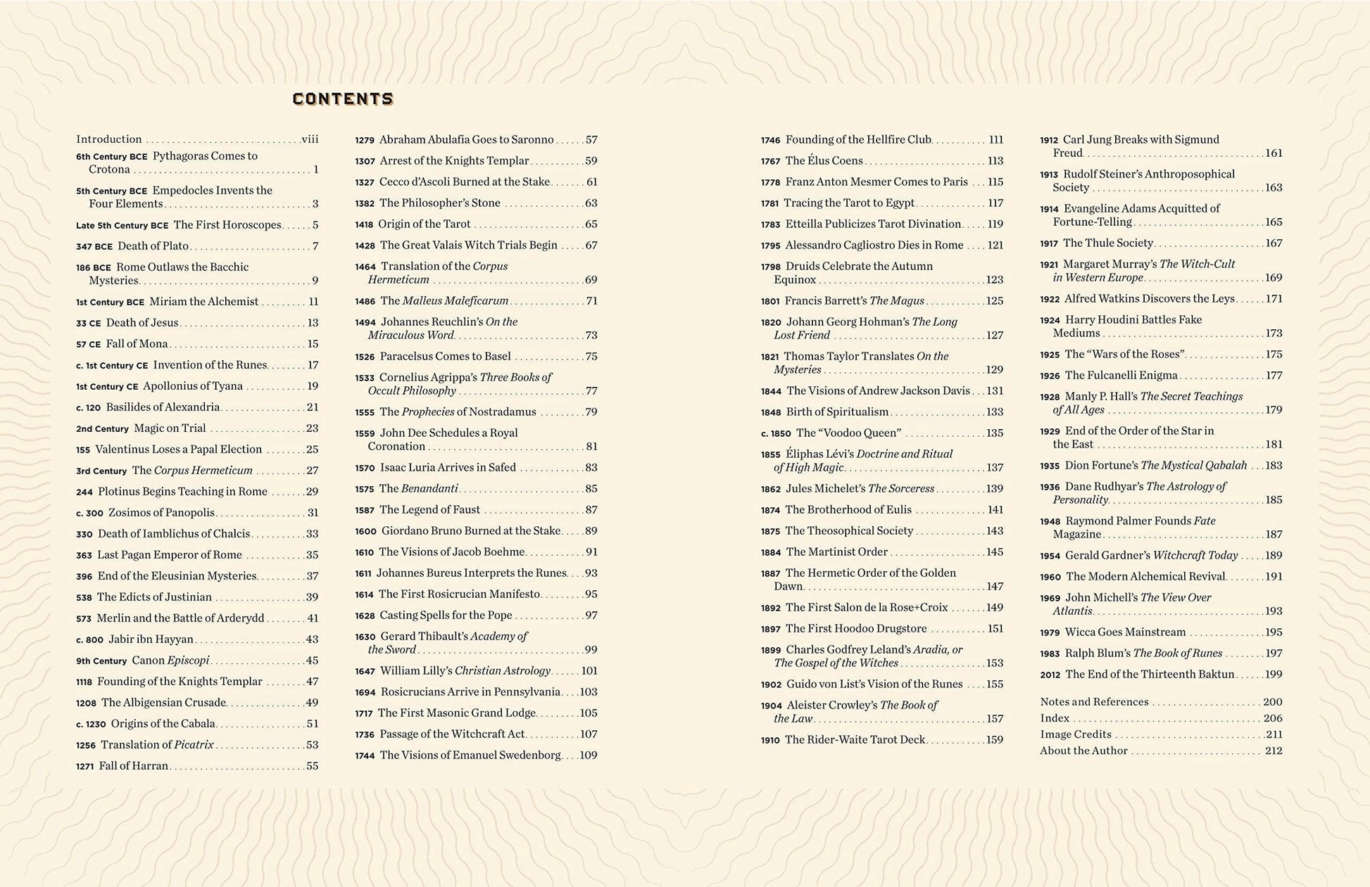 Explore the occult from ancient times to the modern day with one of its most respected scholars and practitioners. Take an enlightening journey through occult history, exploring 100 dramatic incidents, arcane knowledge, and key historical figures from around the world. John Michael Greer delves into two millennia of tradition, from the earliest alchemists to pagan rituals; from the Philosopher's Stone to Cabala, the first tarot, and the Knights Templar; and from the first horoscopes to fortune-telling trials and the birth of modern witchcraft, or Wicca. Each entry features a stunning image or intriguing item of ephemera. Hardcover book with printed laminated cover; 6 3/4 x 8 3/4 inches; 224 pages.