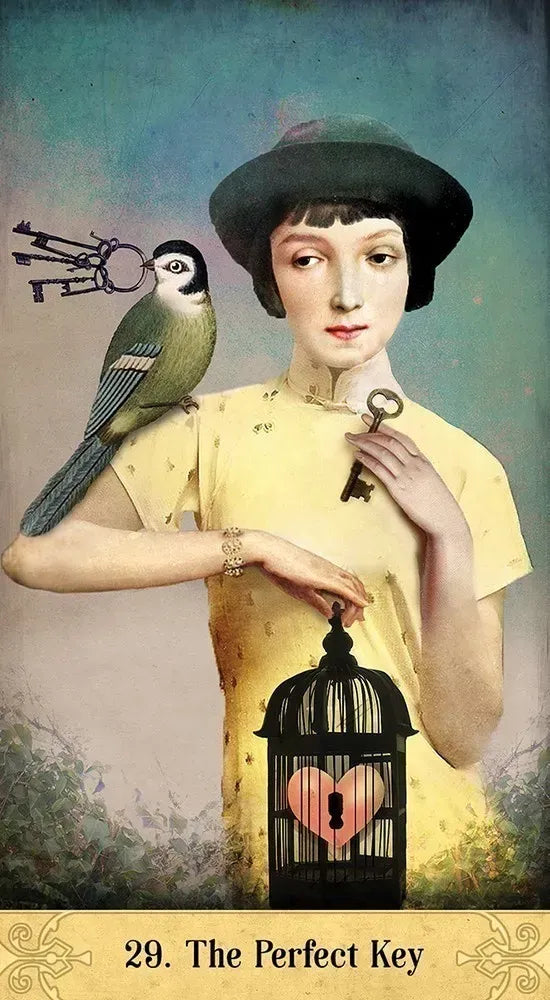 Visionary collage artist Catrin Welz-Stein intermixes unexpected elements of nature and imagination, creating a sumptuous world where flower spirits and floating castles happily co-exist. Each of the 52 oracle cards captures a magical moment full of delightful surprises and vintage charm. Powerful messages in the 44-page guidebook lead you into discoveries of insight that inspire new ways of looking at life.