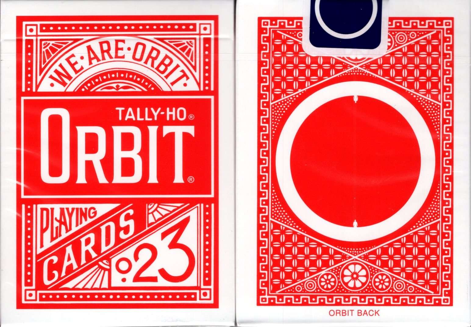 The deck is designed by Daniel Schneider and features Bicycle thin crushed stock for that broken-in feeling! The card faces include the classic Tally-Ho Jokers and a custom Tally-Ho Orbit astronaut Joker, custom court card faces, a double backer card, and extra 8S card.