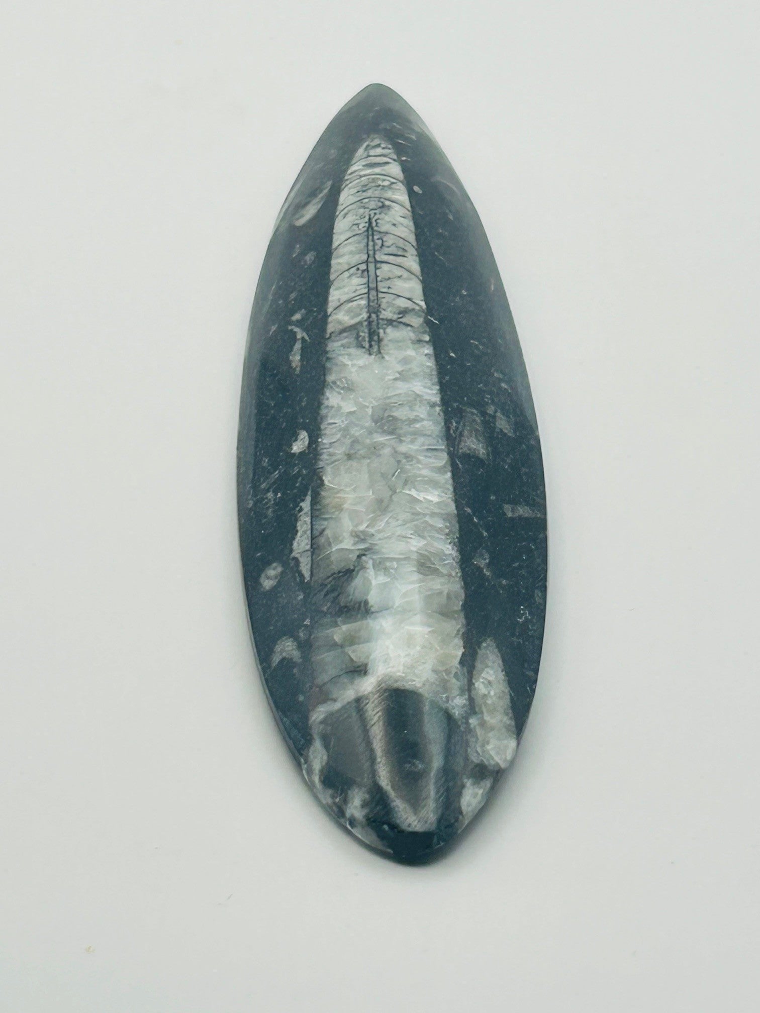Elevate your space with this Orthoceras fossil, a polished treasure from an ancient nautiloid that lived over 400 million years ago. Sourced primarily from Morocco, this striking fossil showcases the unique black-and white chambered patterns of Orthoceras, combining geological intrigue with elegant design.