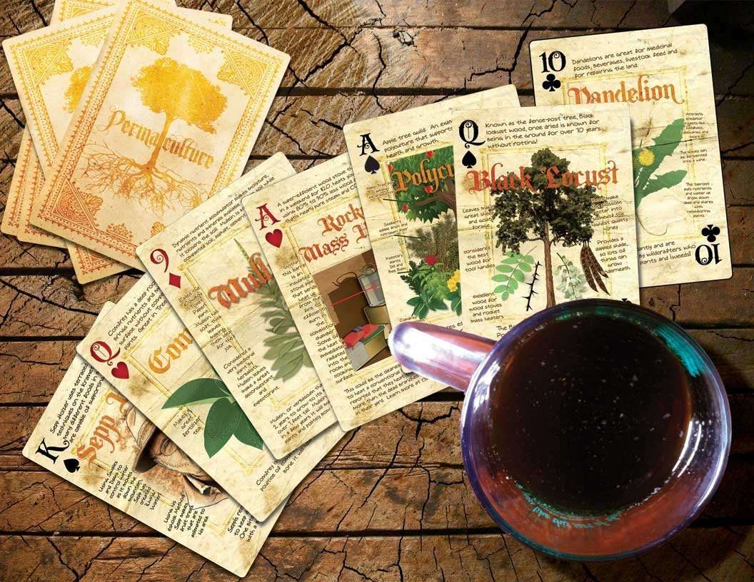 While these are fully functional poker cards, their primary purpose is to show people the rich diversity of permaculture. Permaculture embraces gardening well beyond organic, plus natural building, greening the deserts, alternative energy, feeding the world and blazing a trail for less toxic living.