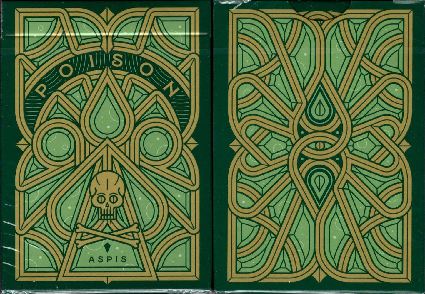 Poison is a series about alchemy, pharmacy and poisons designed by Thirdway Industries. Settled in a fictional America of 1921. Aspis is the first deck of the series, focused on metallic inks.