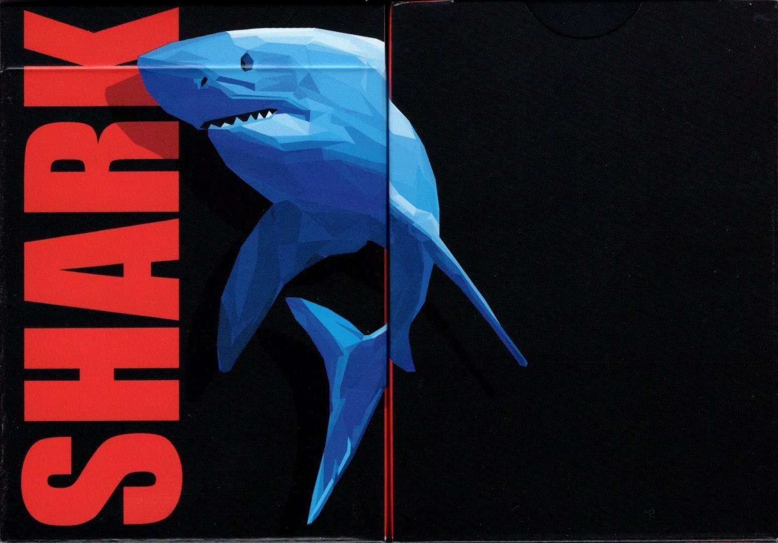 The Shark Playing Cards is inspired by the king of the seas-The Great White Shark. The designer Andrian Valenzuela extended the Shark's body throughout the sides of the box as if it was lurking out of the deep ocean. The Shark's fin seamlessly connects when you fan out or spread the cards, forming an image of the Shark making its way out of the deck. Andrian breaks down the Shark into multiple geometric shapes, giving the Shark a realistic scale-like skin. Combined with the word 'Shark' colored in red, it reminds us to keep an eye out the deep blue.