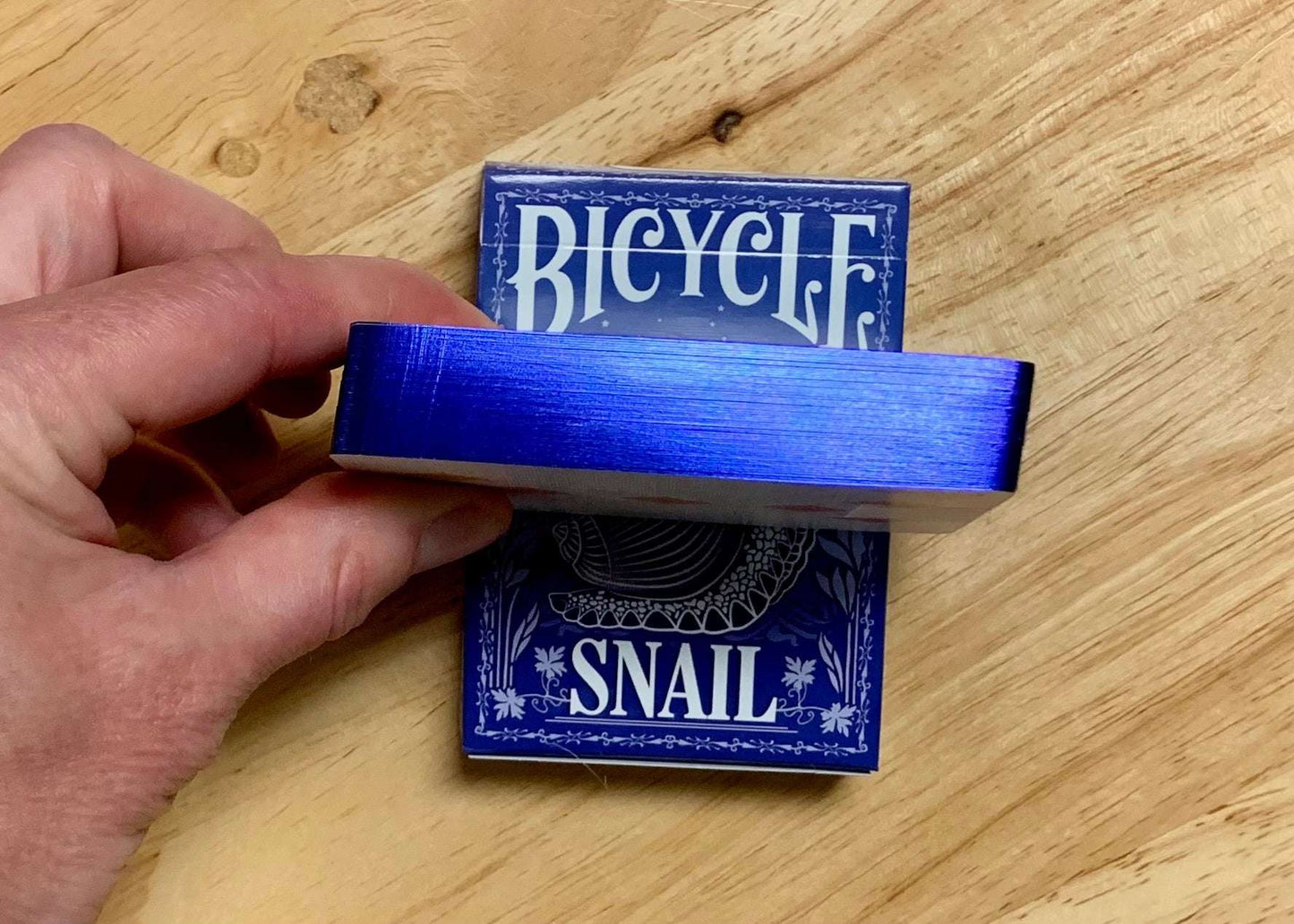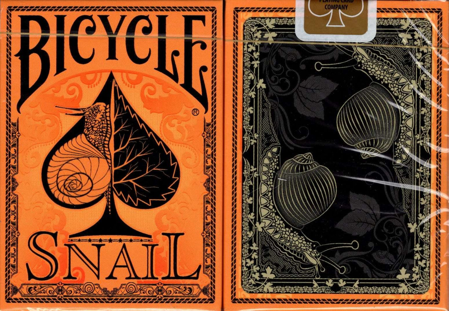 A snail themed limited edition Bicycle poker size deck suitable for all your playing card needs. Makes a great gift for the snail lover in your life or for anyone who appreciates great design. Previous decks in the critter series sold out quickly so don't miss out!