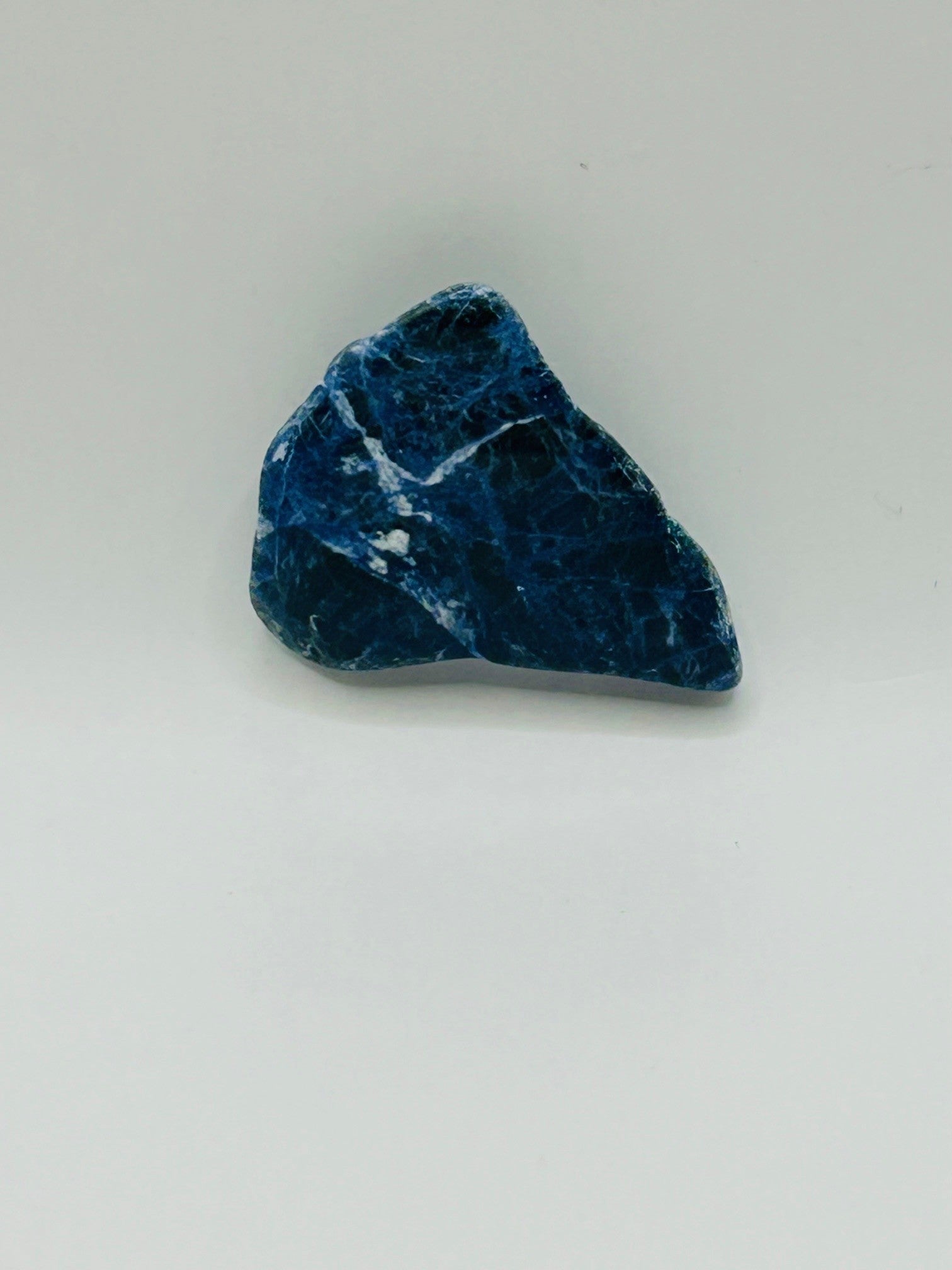 Brazilian sodalite is a striking deep blue mineral often streaked with white calcite, formed in sodium-rich volcanic rock and treasured for its vivid color and rarity. Known as a stone of clarity and truth, it is said to calm the mind, ease anxiety, and strengthen intuition. Many believe it supports the throat and third eye chakras, encouraging honest communication, confident self-expression, and deeper insight. Collectors prize it for its dramatic patterns, while crystal workers value it as a companion for meditation, focus, and emotional balance.