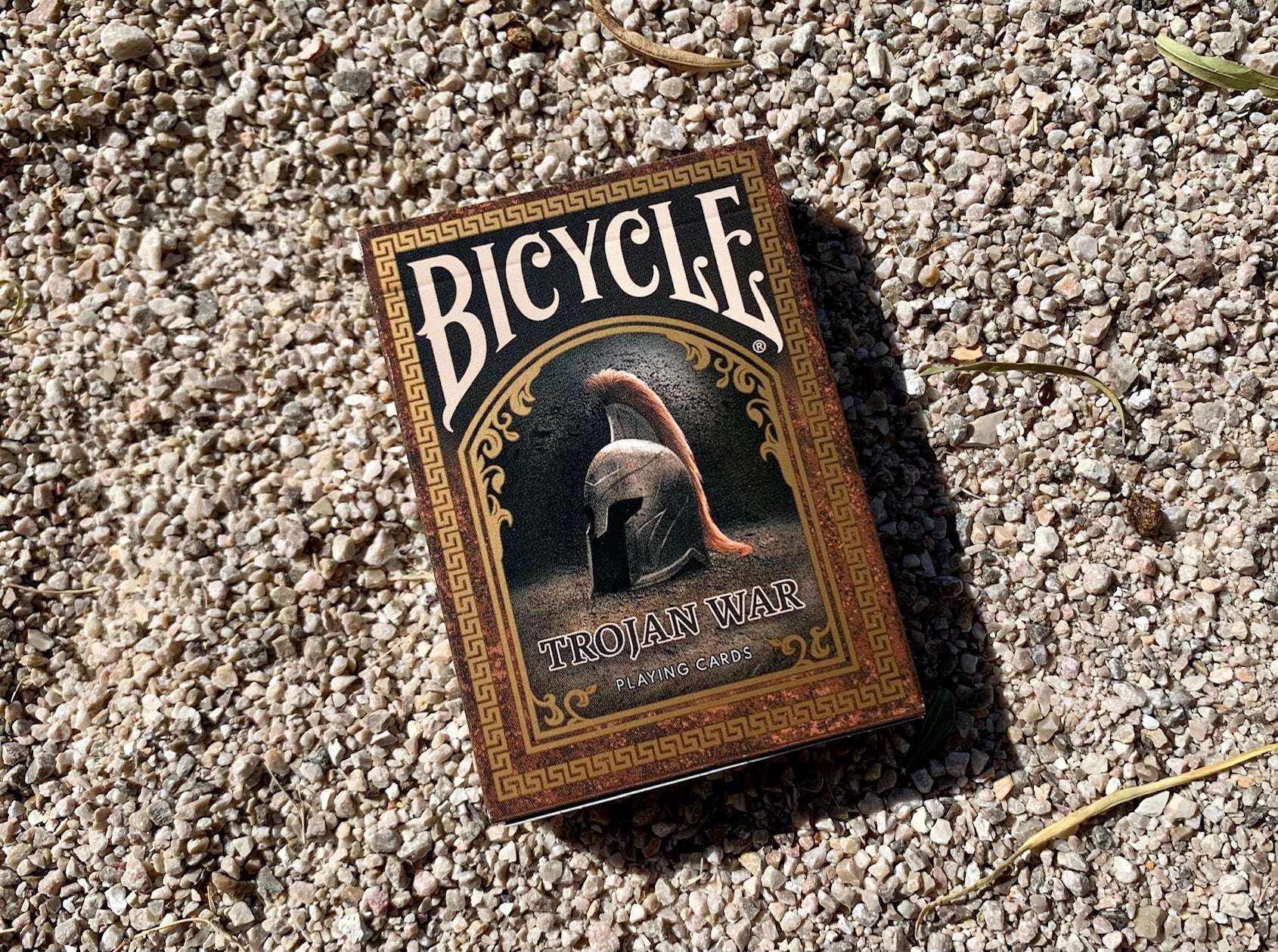 A fully custom deck based on the famous war from Greek mythology. The classical design features characters from the Trojan War on the court cards and aces. 2 information cards are included as the key to the characters and you could also use these cards as extra jokers or trump cards. Metallic inks on the cards and tuck case makes them a delight to handle for games, magic tricks, and cardistry. A great deck for any use or to just add to your collection.
