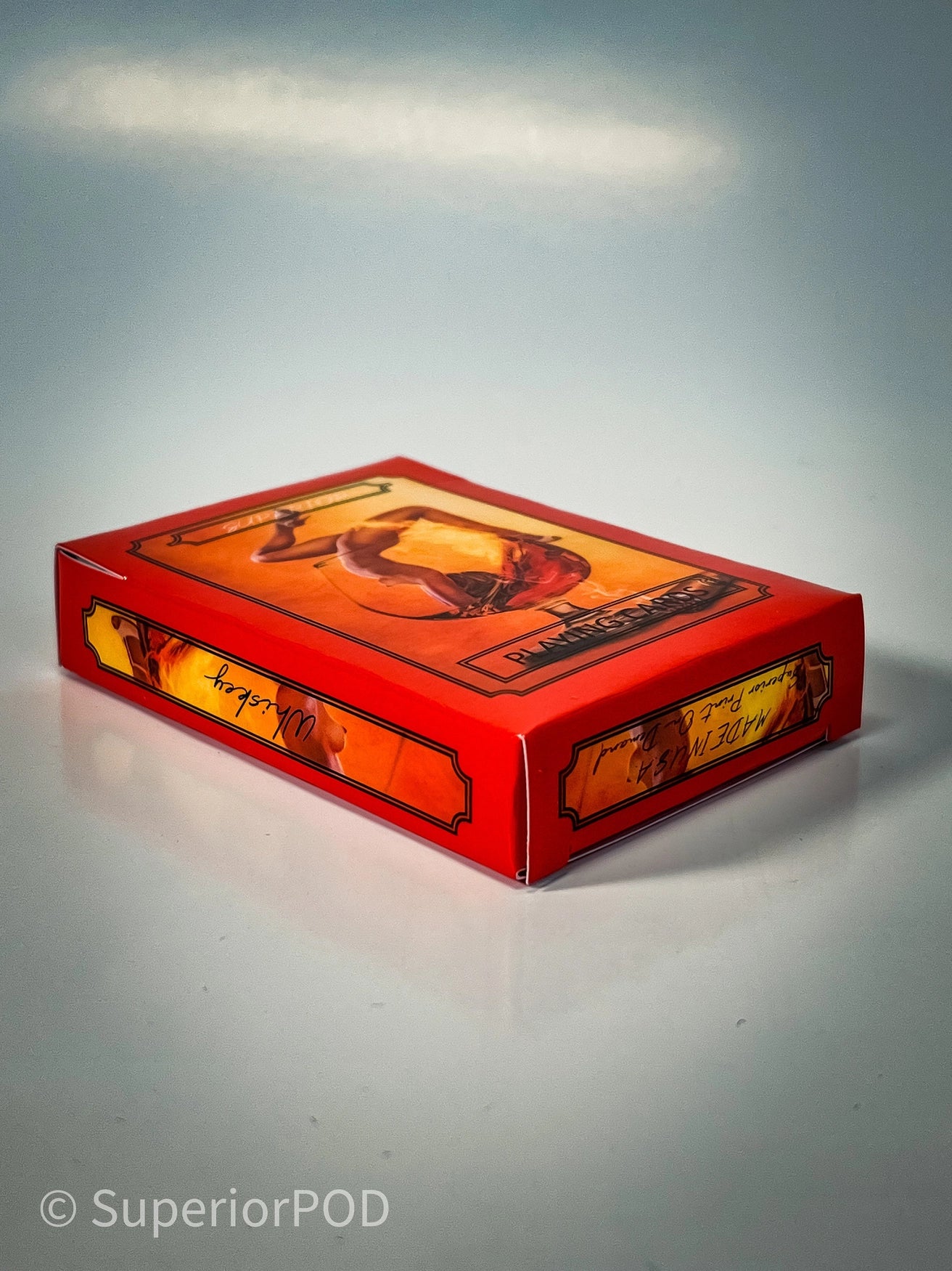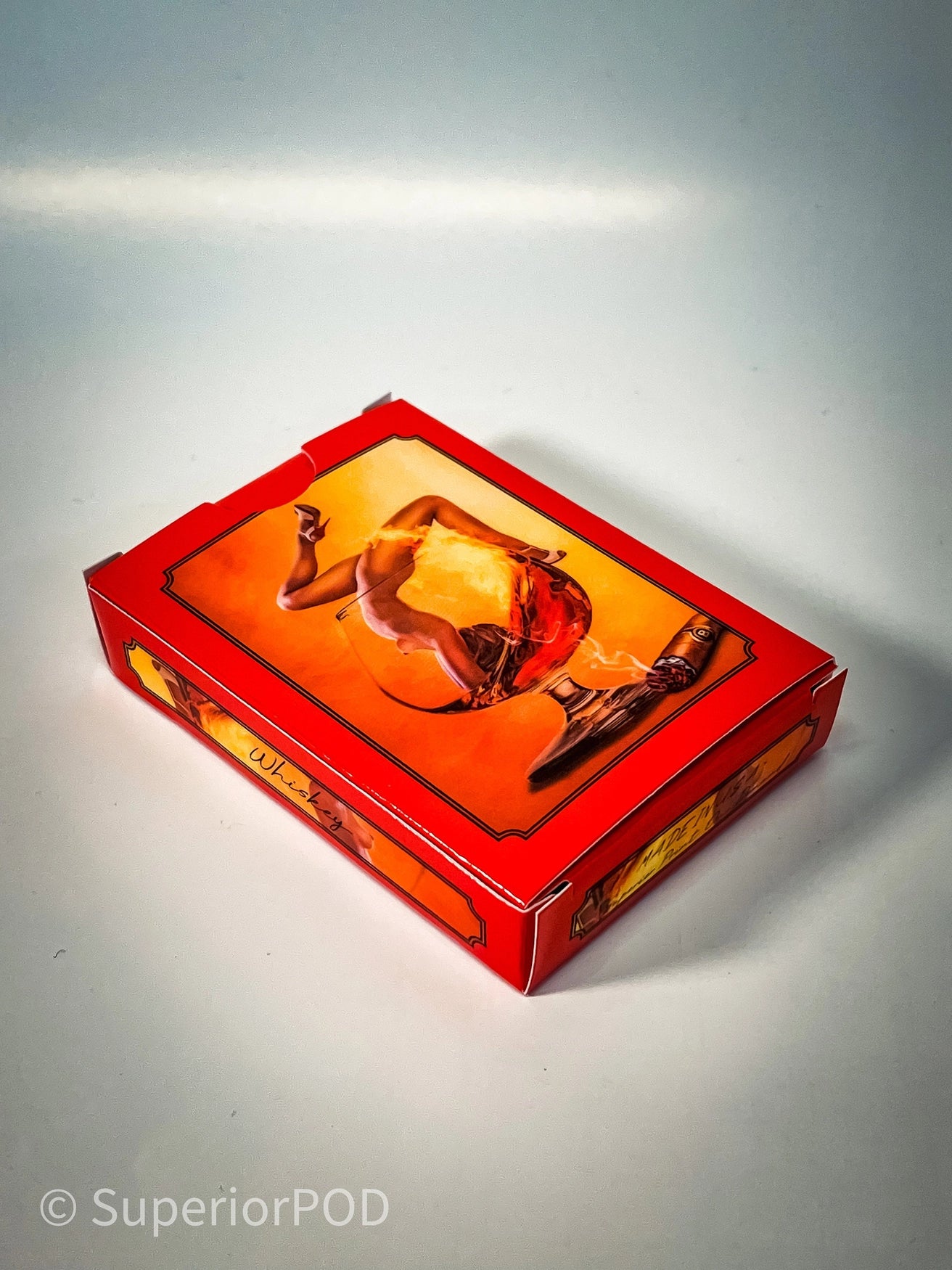 This beautiful, sultry illustration was created by Whitedaemon and found on Pixabay. The artistic changes to create a traditional card back and box were done by Anthony, the VP of SuperiorPOD. A staple for any poker/cigar night this deck is timeless.