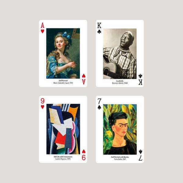Unique art on every card. 52 cards, 2 jokers and 1 reference card.